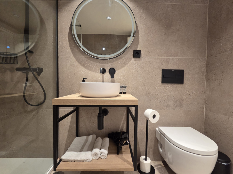 Nieruchomość obejmuje sypialnię i nowoczesną łazienkę, zaprojektowaną z myślą o komforcie i praktyczności w wyjątkowej okolicy.