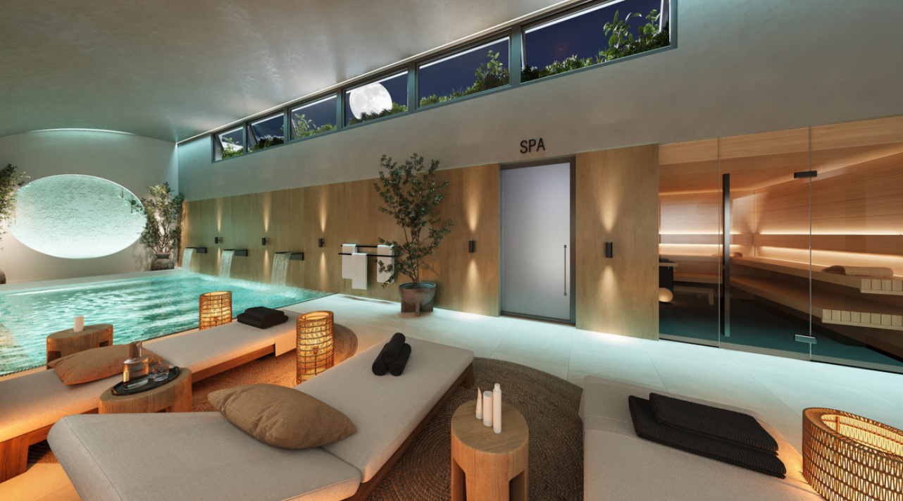 Aby uzupełnić to wyjątkowe doświadczenie, projekt oferuje szeroką gamę przestrzeni wspólnych zaprojektowanych dla Twojego dobrego samopoczucia. Kompleks zajmuje działkę o powierzchni 31 000 m², która obejmuje dwa baseny z wodą morską (jeden z nich to basen typu infinity zaprojektowany do pływania), strefę wellness o powierzchni ponad 300 m², w tym siłownię wyposażoną w nowoczesne maszyny z naturalnym światłem i wentylacją, spa z podgrzewanym basenem i sauną z przebieralniami i prysznicami, pokój społeczny i coworkingowy, zewnętrzny salon z kuchnią i chilloutem – idealne miejsce do wspólnego spędzania czasu na świeżym powietrzu, taras do jogi na zewnątrz, plac zabaw dla dzieci, boisko do siatkówki plażowej z piaskiem, wielofunkcyjne do gry w Padel Beach, putting green, ekologiczne ogrody warzywne, punkt widokowy z miejscem do czytania, ścieżki spacerowe i rozległe zintegrowane tereny naturalne.