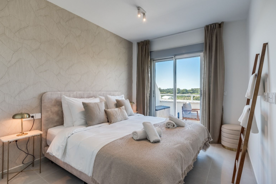 W głównej sypialni znajduje się łazienka oraz szafy wnękowe. Jest tu również druga sypialnia z łóżkiem podwójnym oraz oddzielna łazienka dla gości.