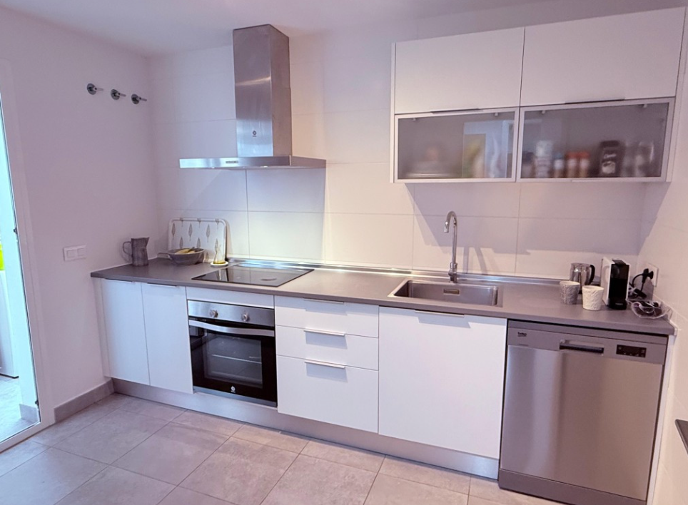 W pełni wyposażoną kuchnię z płytą ceramiczną, piekarnikiem, lodówką z zamrażarką, zmywarką, kuchenką mikrofalową oraz oddzielną pralnię/pomieszczenie gospodarcze z pralką