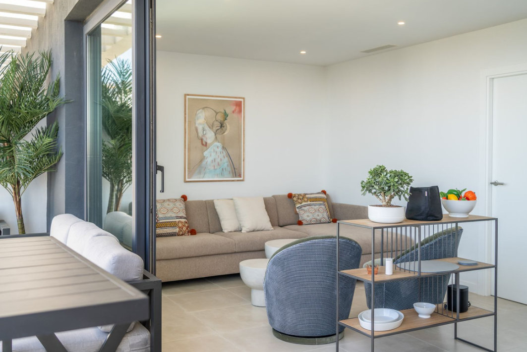 • Duże szklane drzwi przesuwne zapewniające dostęp naturalnego światła oraz widok na morze i góry