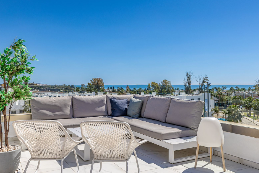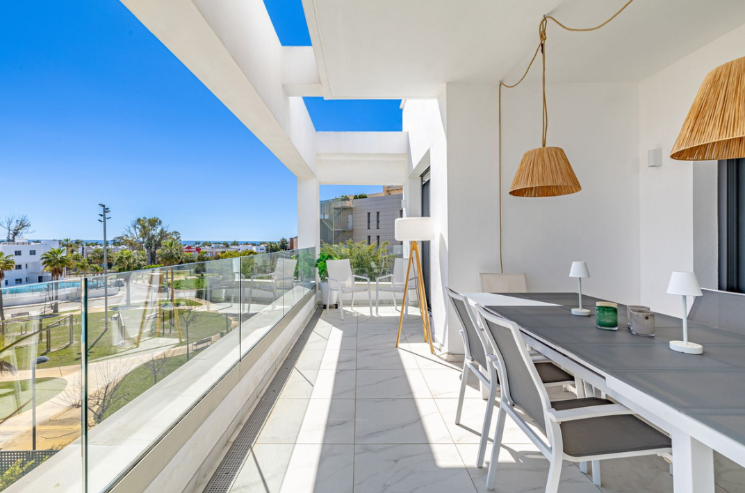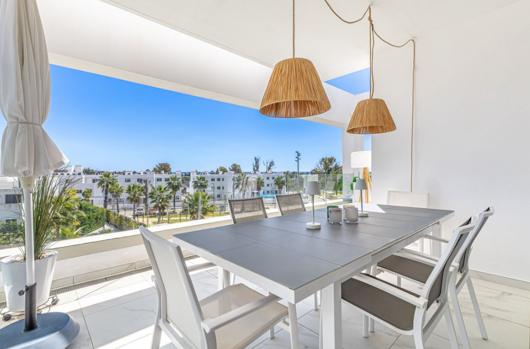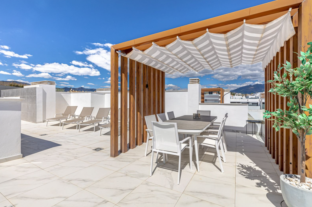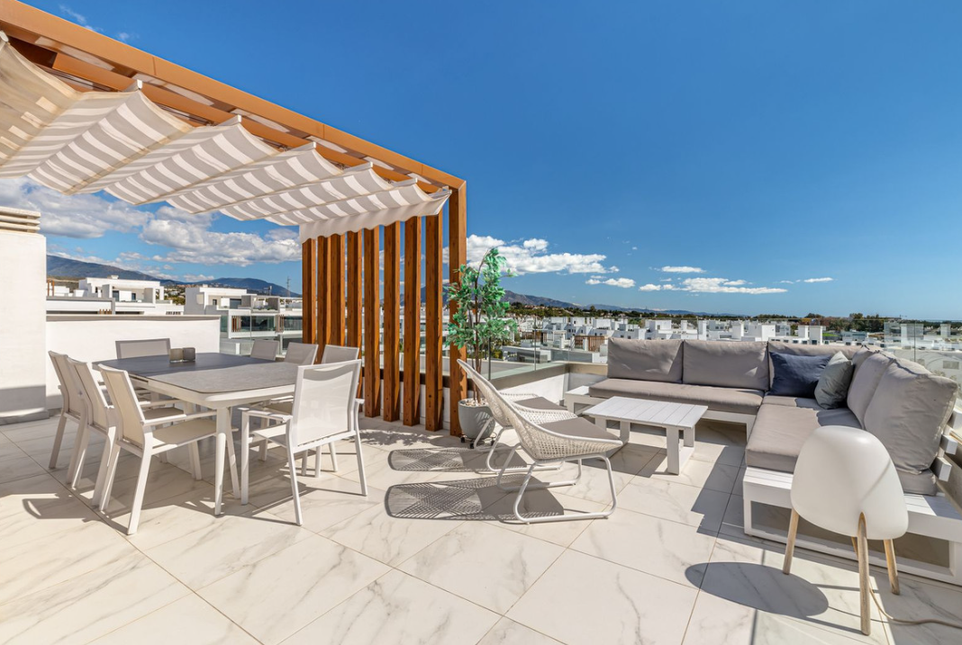This modern and stylish apartment in Cancelada, perfectly located between Marbella and Estepona, offers a fantastic rooftop terrace and prime location! Built in 2020, the property includes two garage spaces and a storage room. Restaurants, shops, supermarkets, and the beach are all within walking distance.