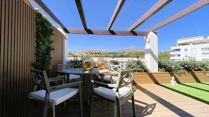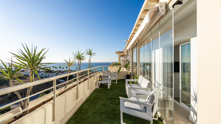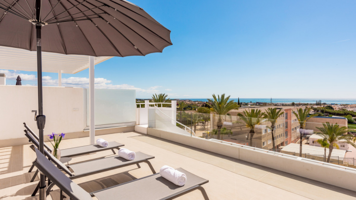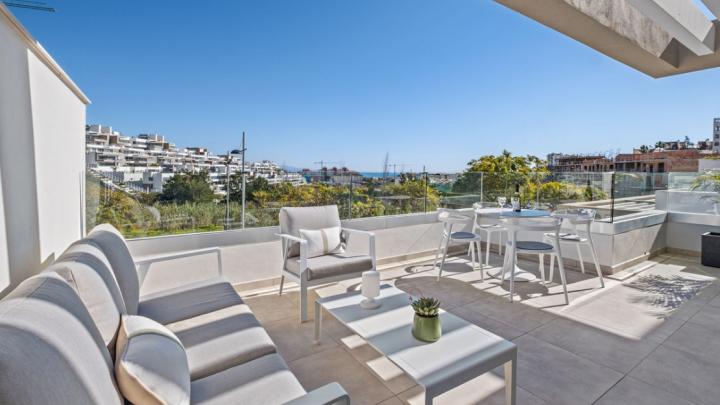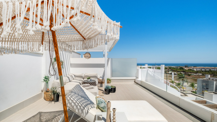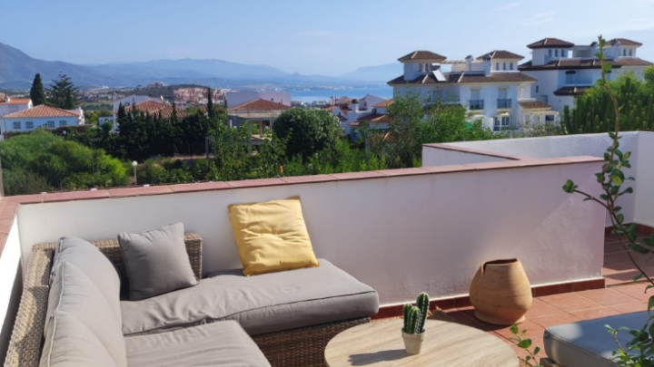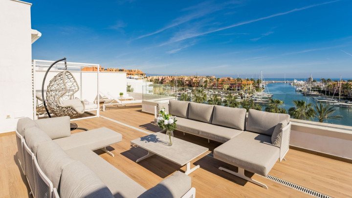 Niesamowity apartament z dużym zadaszonym tarasem i panoramicznym widokiem na port w Esteponie, morze i Gibraltar!