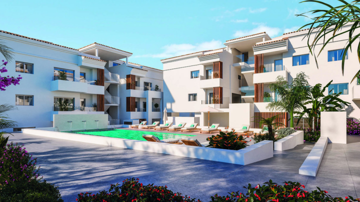 Nowoczesny kompleks apartamentów z basenem i bliskim dostępem do morza.