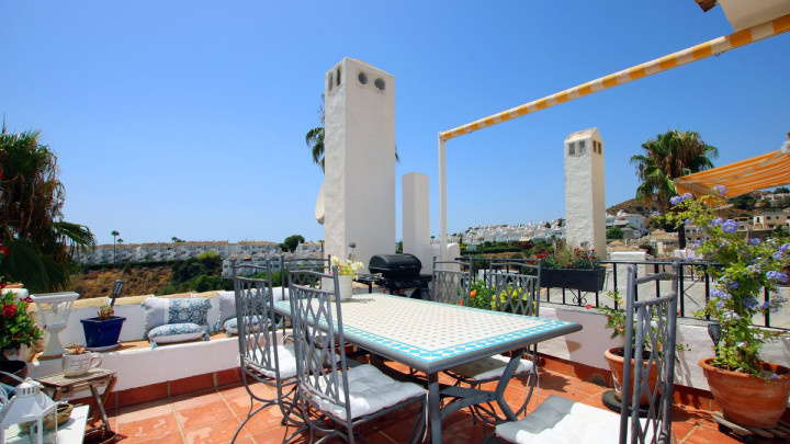Dom bliźniaczy, Położony w Torreblanca w Fuengirola, w spokojnej okolicy. Zaledwie kilka minut jazdy samochodem do plaży i wszystkich udogodnień Fuengiroli. W małej urbanizacji składającej się z 6 domów, które dzielą wspólny basen