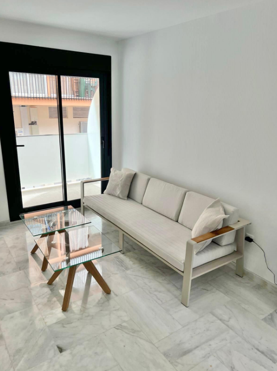 Apartament posiada prywatny taras i znajduje się obok wszystkich usług i udogodnień oraz kilka kroków od plaży.
