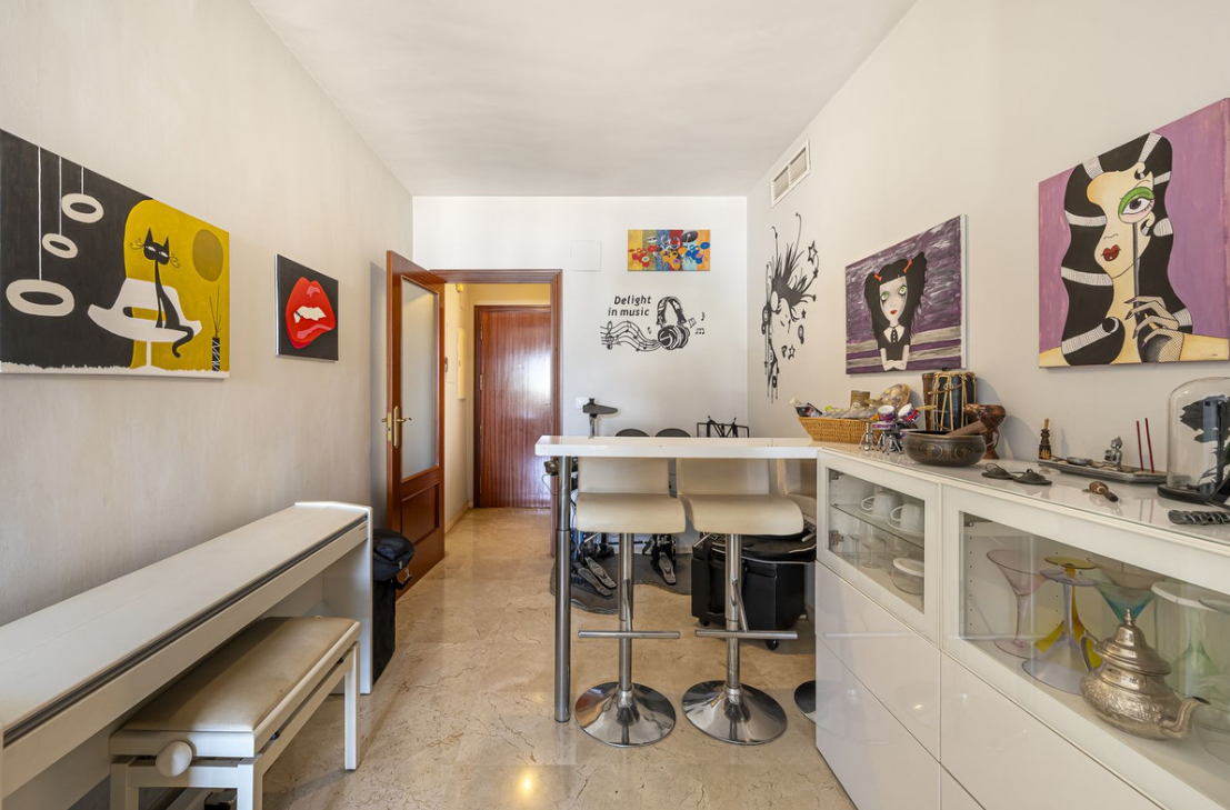 Piękny penthouse położony w prywatnej i cichej urbanizacji Camino de los Molinos w Esteponie. Nieruchomość o powierzchni 112 m2 ma podwójny garaż o powierzchni 39 m2 i pomieszczenie gospodarcze o powierzchni 9 m2.