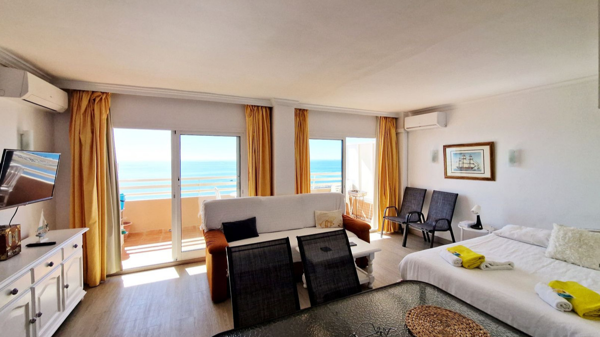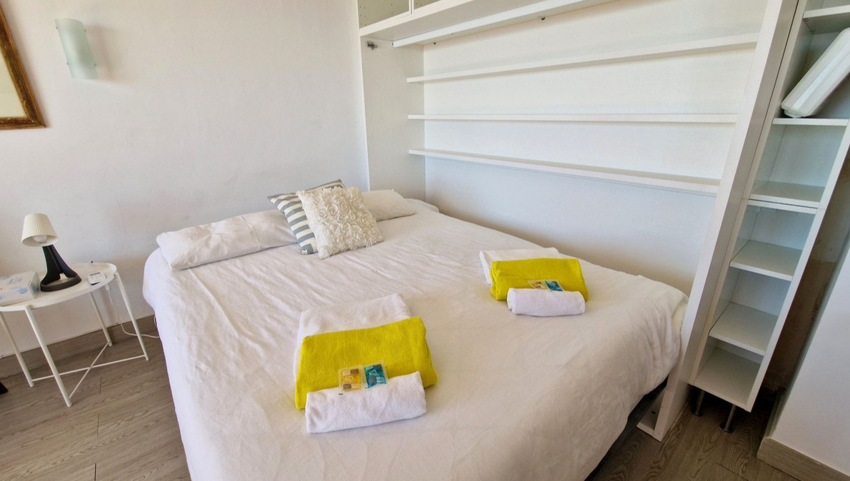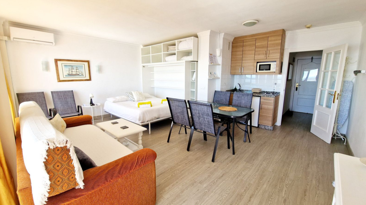 Pierwotnie apartament z 1 sypialnią, obecnie przekształcony w studio na otwartym planie. Znajduje się w jednym z najbardziej poszukiwanych budynków przy promenadzie, aparthotelu Stella Maris; z całodobową recepcją, barem, podgrzewanym basenem, 4 windami, WIFI, telewizją satelitarną, klimatyzacją i wszystkimi zabezpieczeniami 3-gwiazdkowego hotelu. Taras od strony południowej i daje fantastyczną inwestycję na wynajem. Licencja turystyczna na miejscu.
