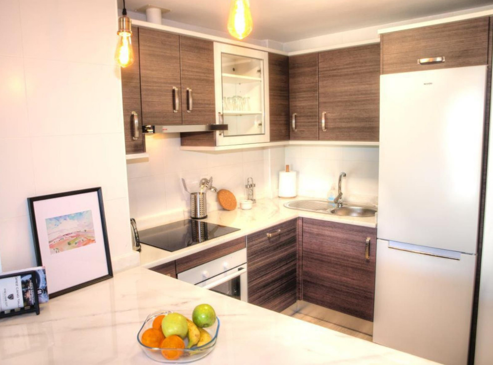 Apartament posiada nowoczesną, w pełni wyposażoną kuchnię otwartą na salon, przylegający do tarasu.