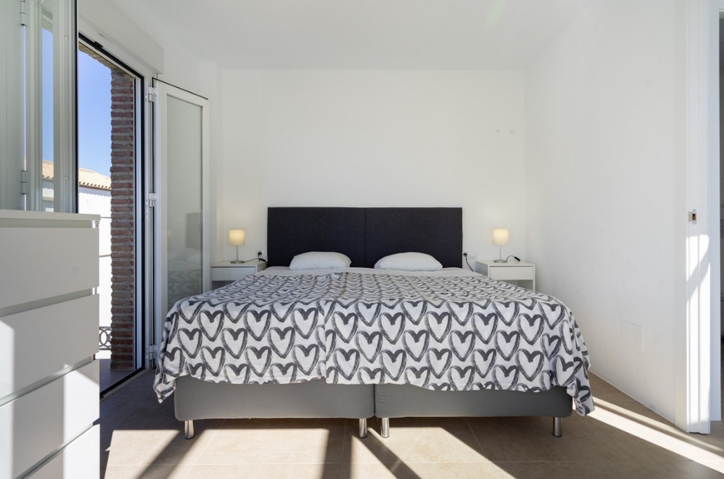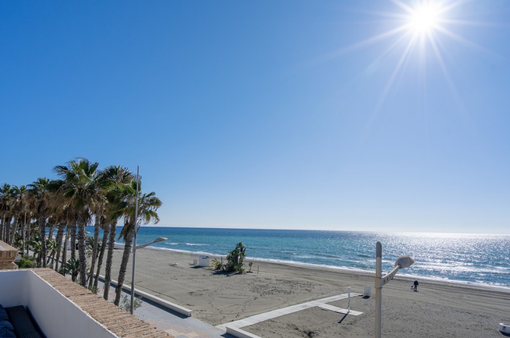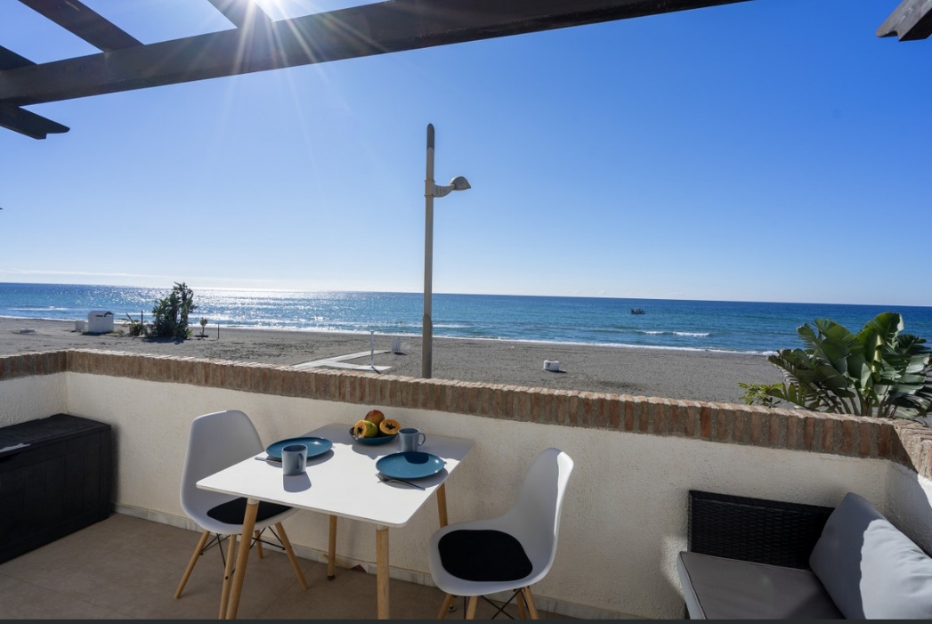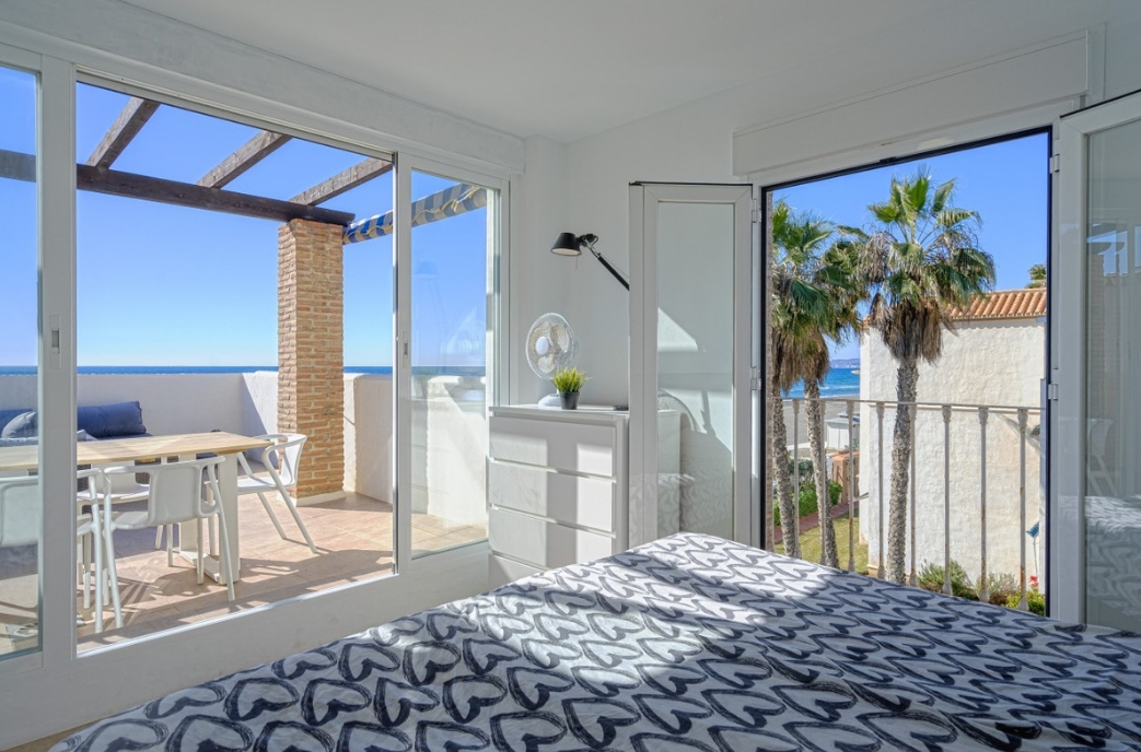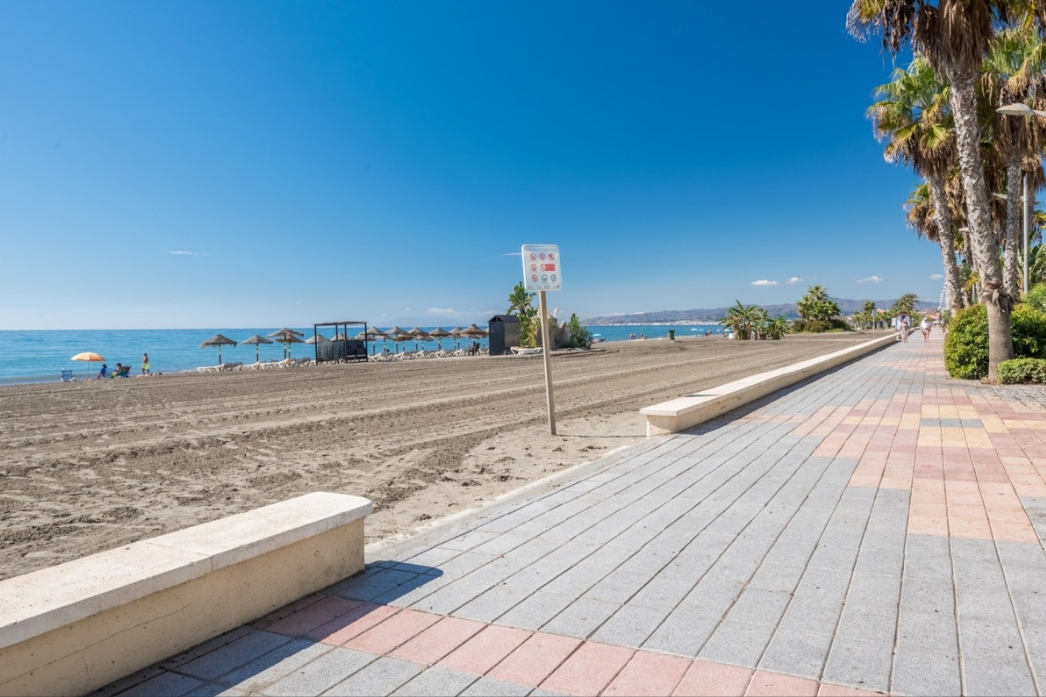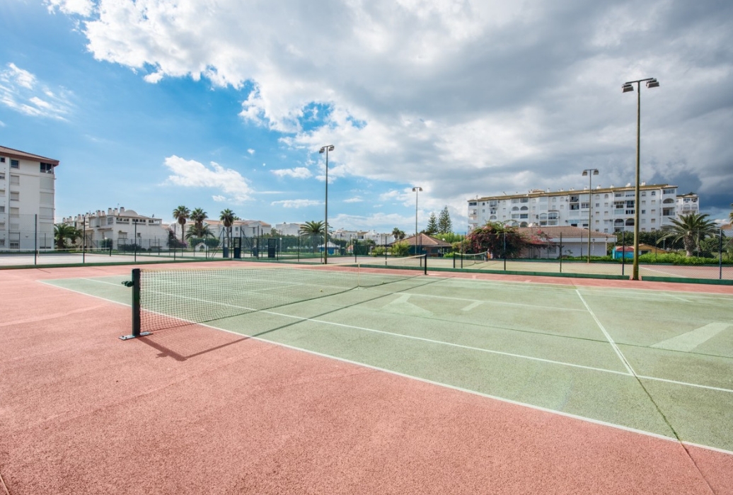 Doświadcz rzadkiej okazji posiadania oszałamiającego, w pełni odnowionego dwupoziomowego penthouse'u przy plaży w poszukiwanym kompleksie Laguna Beach. Ta dobrze utrzymana społeczność oferuje mnóstwo udogodnień, w tym 4 odkryte baseny, kryty basen, 4 korty tenisowe, kort do padla, rozległe ogrody z małymi jeziorami i kaczkami, restaurację i sklep spożywczy. Kompleks jest idealnie położony wzdłuż promenady z bezpośrednim dostępem do plaży Torrox Costa.