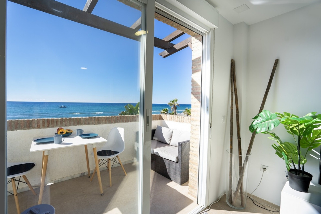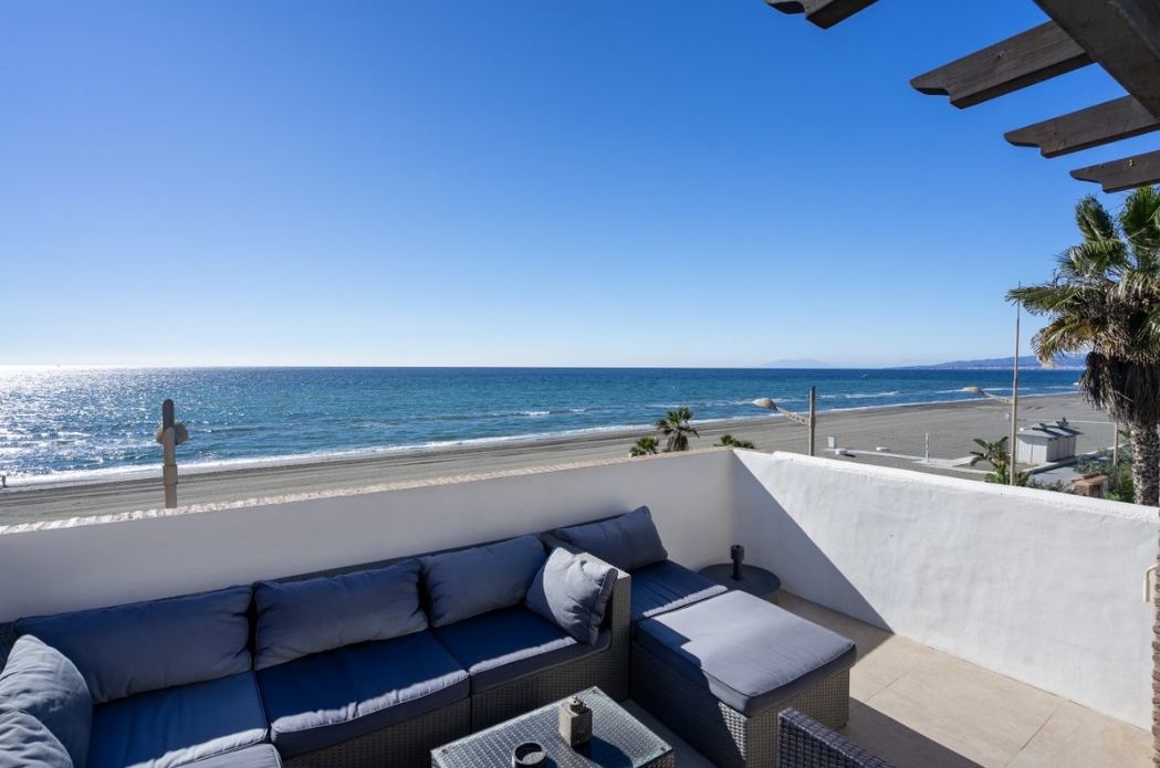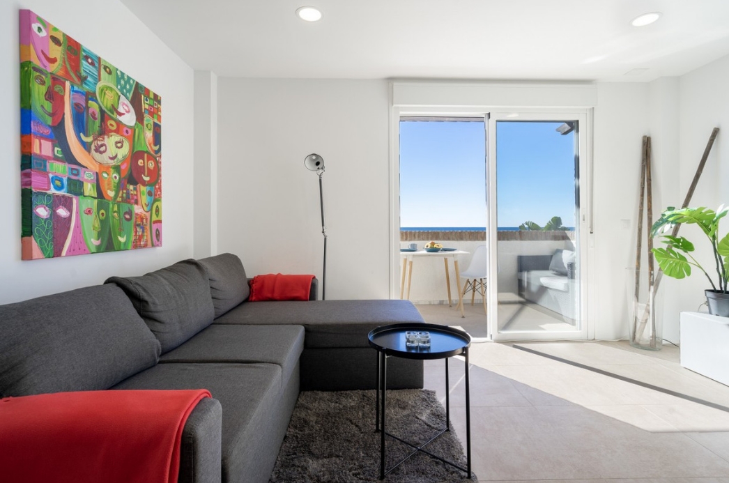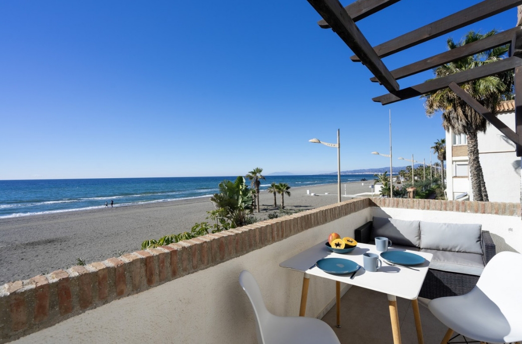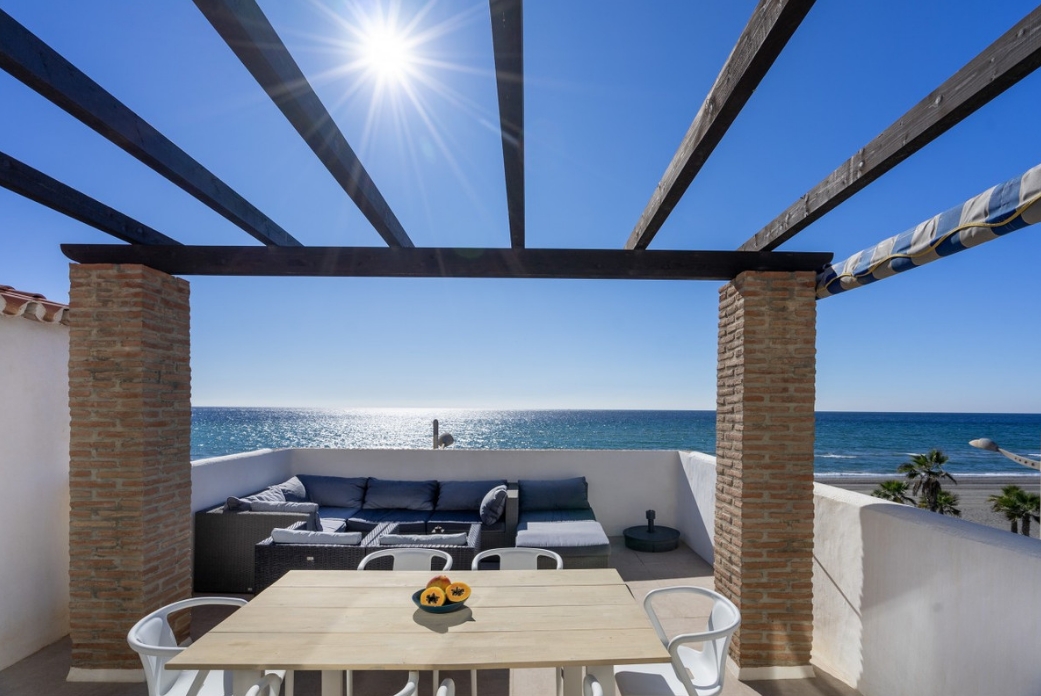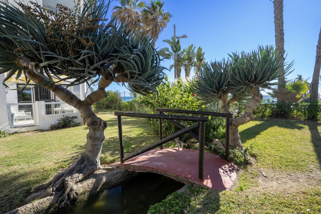 Doświadcz rzadkiej okazji posiadania oszałamiającego, w pełni odnowionego dwupoziomowego penthouse'u przy plaży w poszukiwanym kompleksie Laguna Beach. Ta dobrze utrzymana społeczność oferuje mnóstwo udogodnień, w tym 4 odkryte baseny, kryty basen, 4 korty tenisowe, kort do padla, rozległe ogrody z małymi jeziorami i kaczkami, restaurację i sklep spożywczy. Kompleks jest idealnie położony wzdłuż promenady z bezpośrednim dostępem do plaży Torrox Costa.