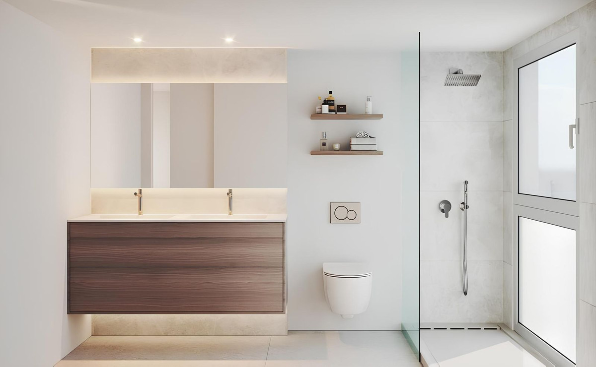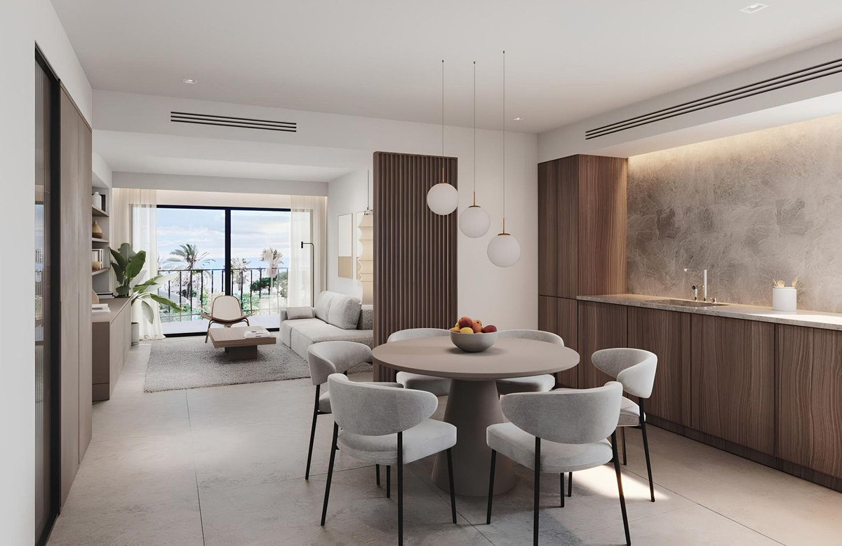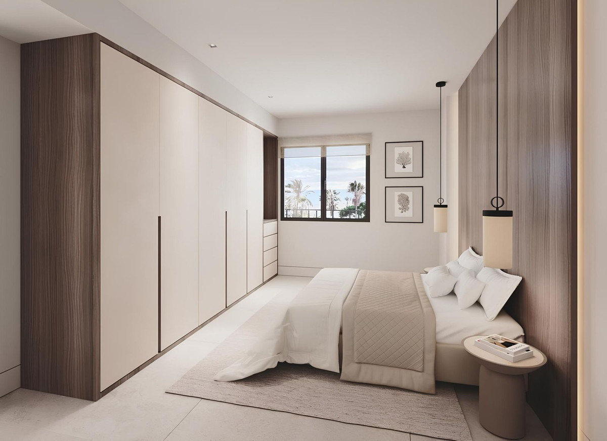 Posiada trzy sypialnie z wbudowanymi szafami, dwie łazienki z ogrzewaniem podłogowym, z których jedna jest en-suite. Salon jest bardzo przestronny i ma drzwi na taras, a główna sypialnia ma okno na taras. Oba pokoje oferują niesamowite widoki na Morze Śródziemne. Dodatkowo z jednej z sypialni dostępne jest wewnętrzne patio.