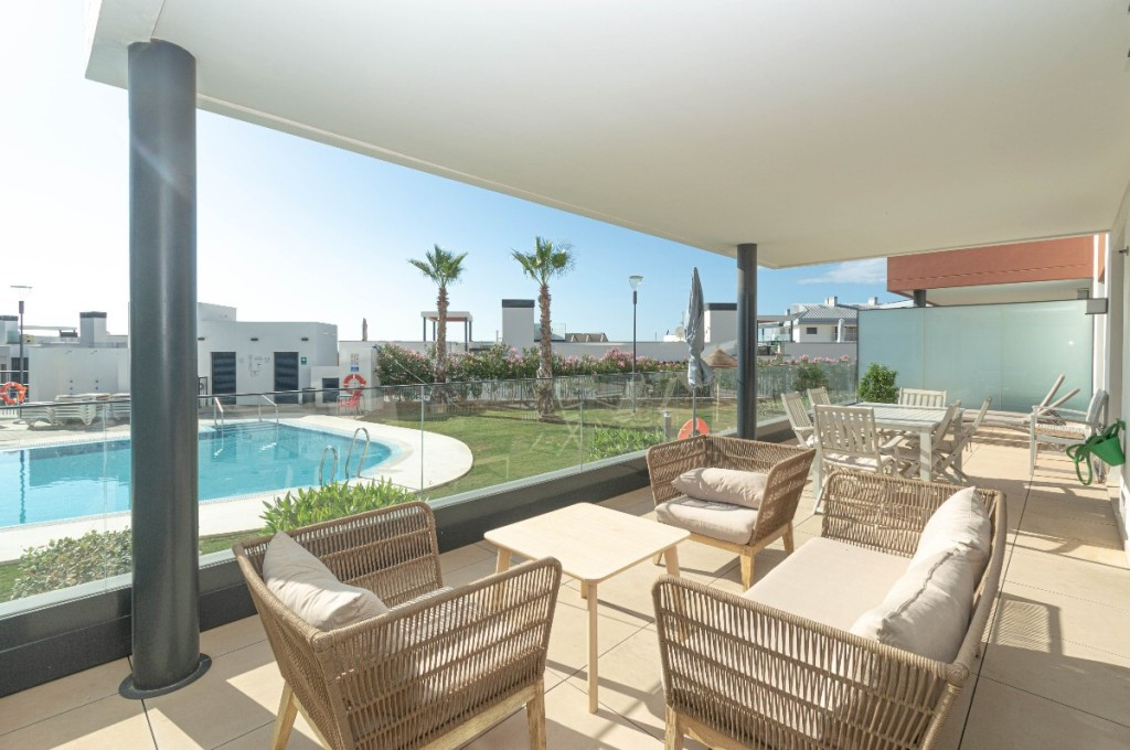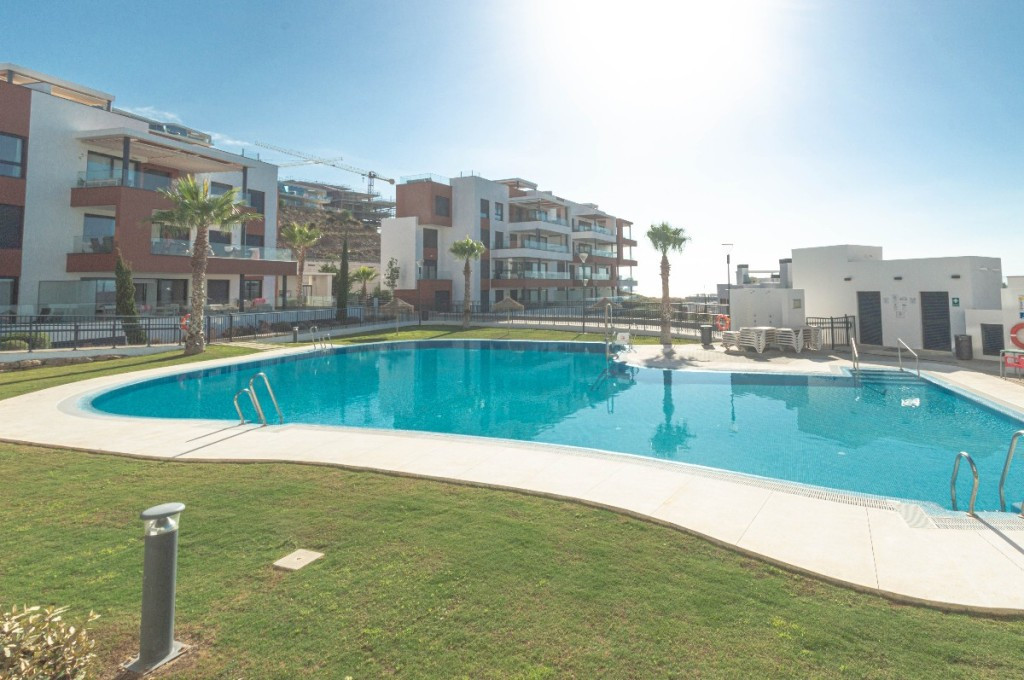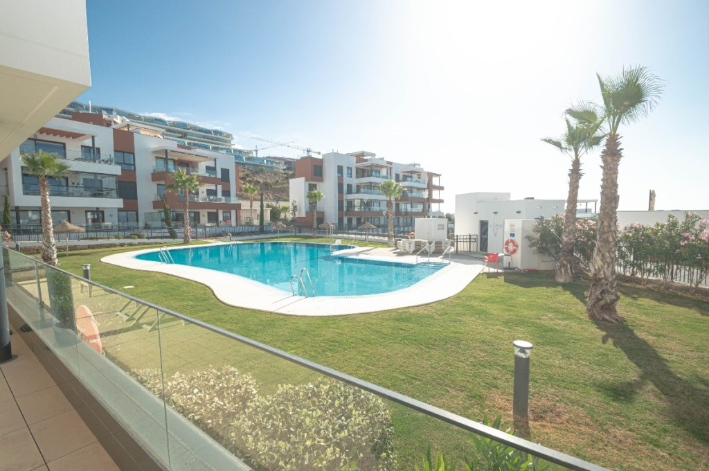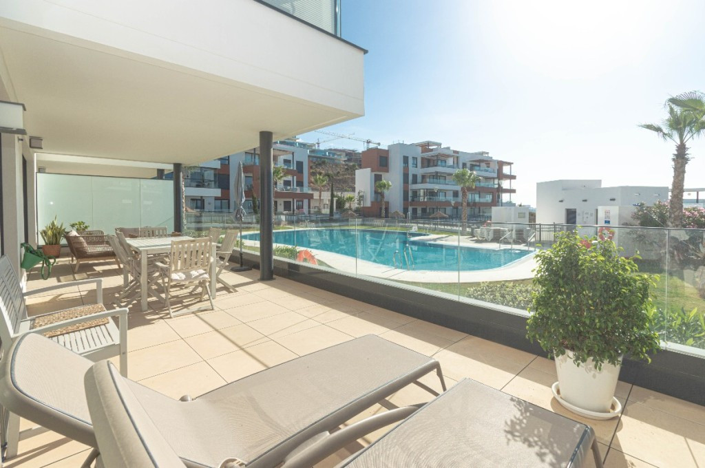 Luksusowy apartament z bardzo dużym słonecznym tarasem z widokiem na ogród, basen i morze, położony w dolnej części Higuerón (Carvajal), 180 metrów od przystanku kolejowego i 300 metrów od plaży.