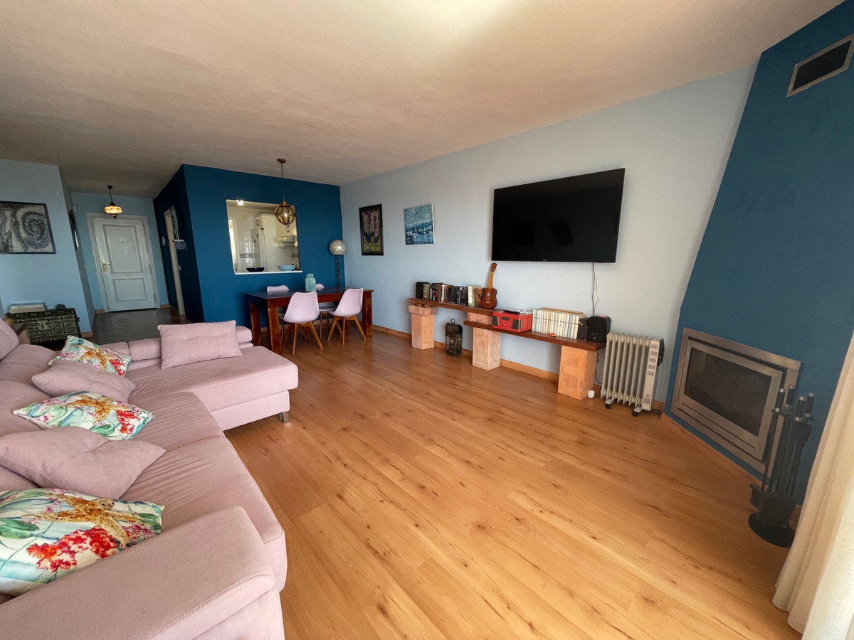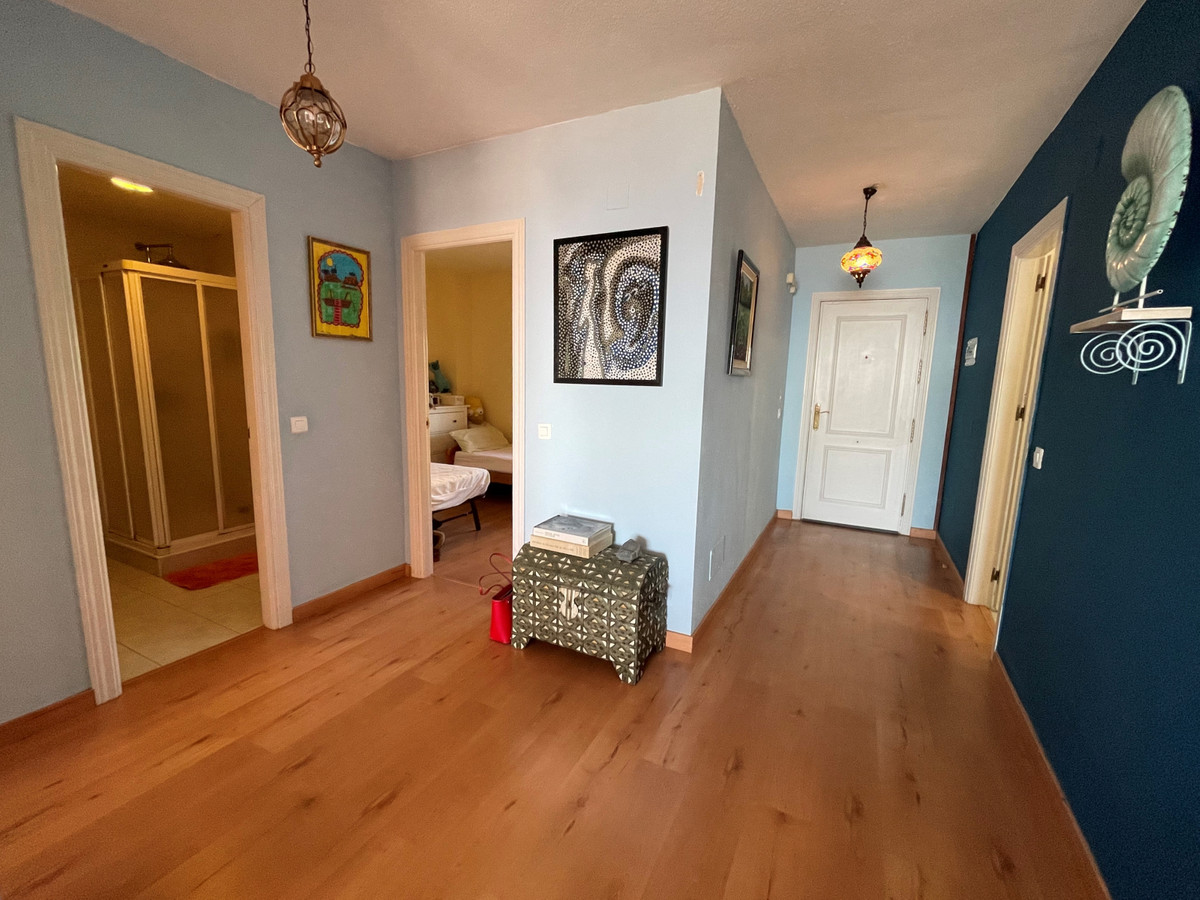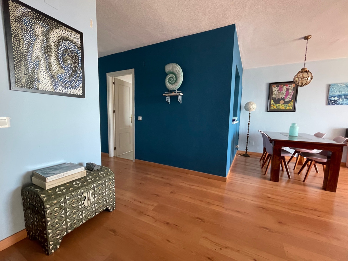 Piękny i jasny apartament ze wspaniałym widokiem na morze; orientacja południowa, wschodnia i zachodnia. Pomiędzy Marbellą (14 km) i Fuengirolą (14 km), w Calahonda, Mijas Costa, Malaga. Bardzo blisko portu i plaż Cabopino i wydm Artola de Marbella. Wspaniały taras o powierzchni 26 metrów kwadratowych i duży salon z widokiem na morze, w pełni umeblowana kuchnia, również z widokiem na morze; dwie sypialnie, jedna z widokiem na morze, a druga na ogrody; dwie łazienki, jedna z łazienką i kompletna, z wanną; druga z prysznicem. Komin. Wbudowane szafy w trzech korpusach Pralnia. Ogrody wspólnotowe z dwoma dużymi basenami. W urbanizacji obok kilku restauracji i barów koktajlowych.