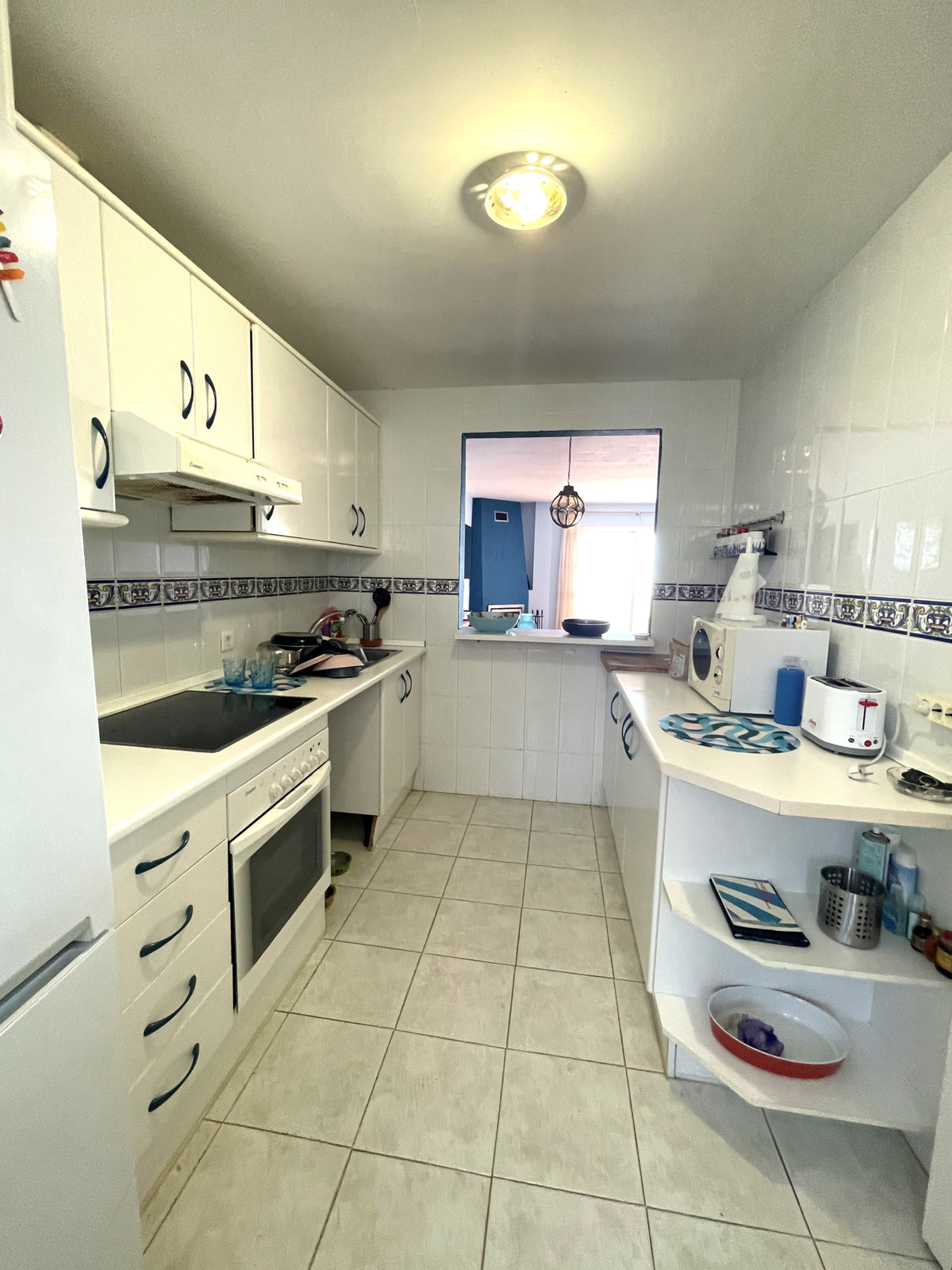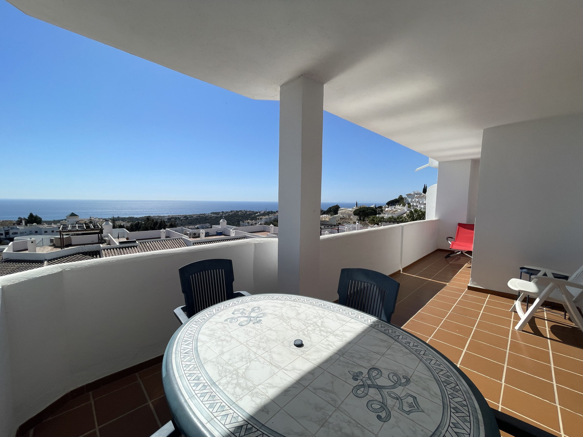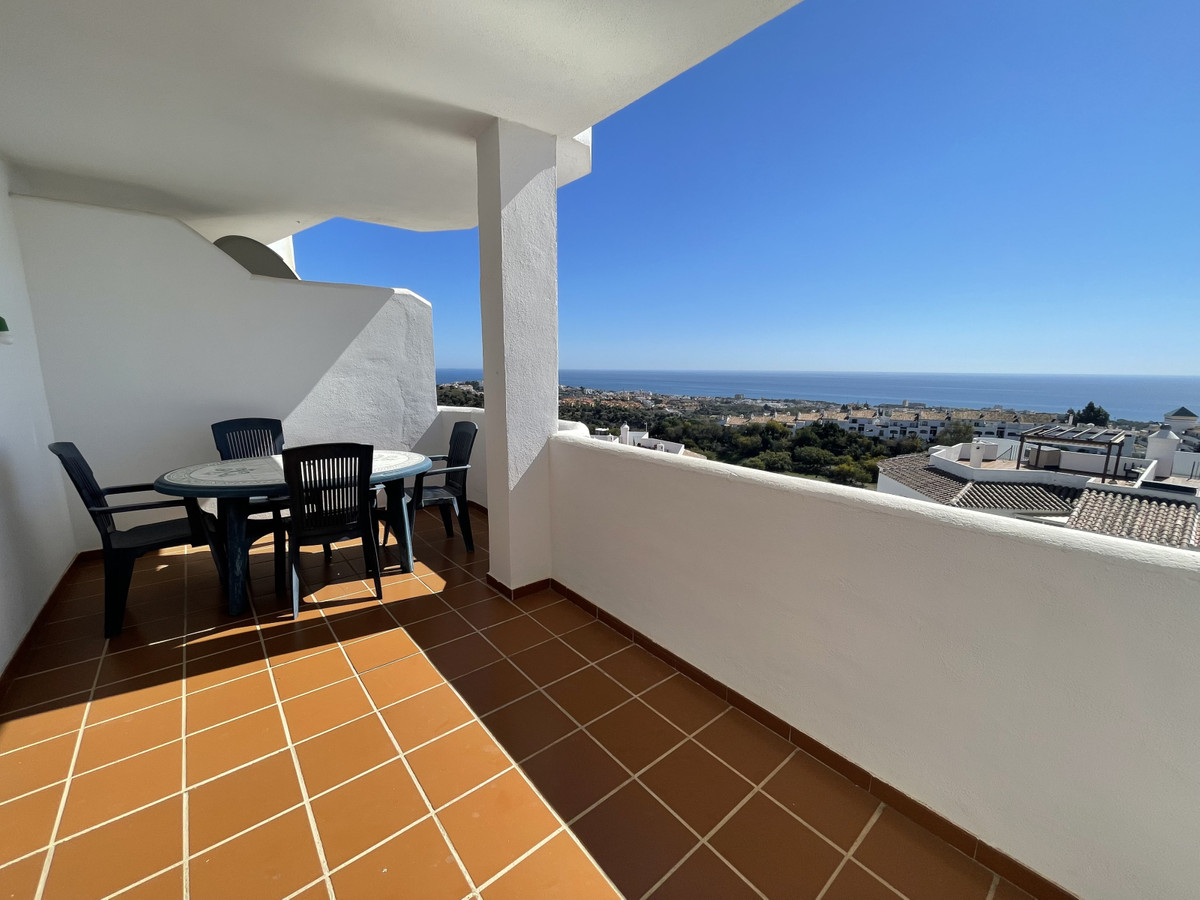 Piękny i jasny apartament ze wspaniałym widokiem na morze; orientacja południowa, wschodnia i zachodnia. Pomiędzy Marbellą (14 km) i Fuengirolą (14 km), w Calahonda, Mijas Costa, Malaga. Bardzo blisko portu i plaż Cabopino i wydm Artola de Marbella. Wspaniały taras o powierzchni 26 metrów kwadratowych i duży salon z widokiem na morze, w pełni umeblowana kuchnia, również z widokiem na morze; dwie sypialnie, jedna z widokiem na morze, a druga na ogrody; dwie łazienki, jedna z łazienką i kompletna, z wanną; druga z prysznicem. Komin. Wbudowane szafy w trzech korpusach Pralnia. Ogrody wspólnotowe z dwoma dużymi basenami. W urbanizacji obok kilku restauracji i barów koktajlowych.