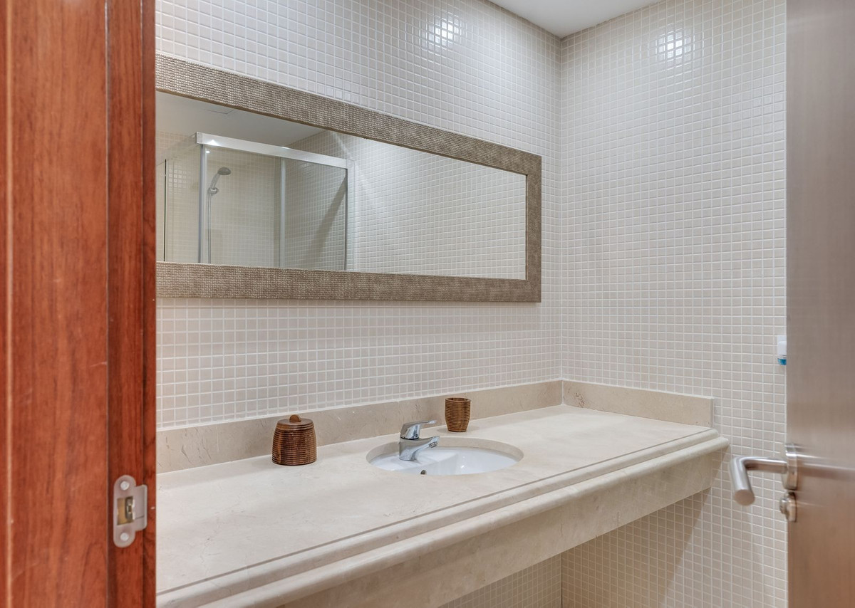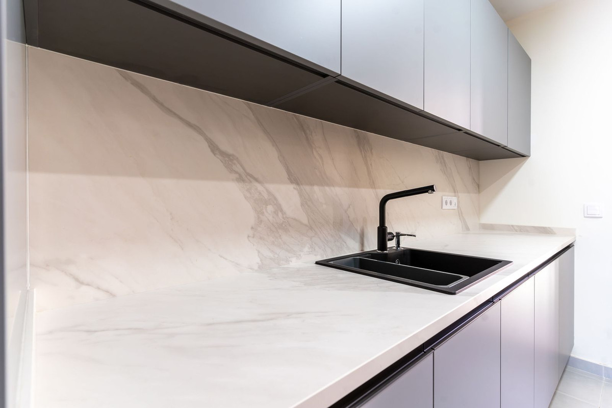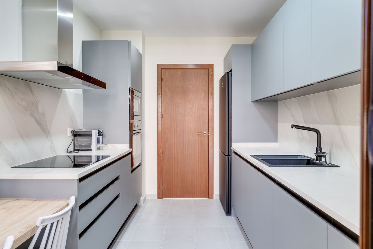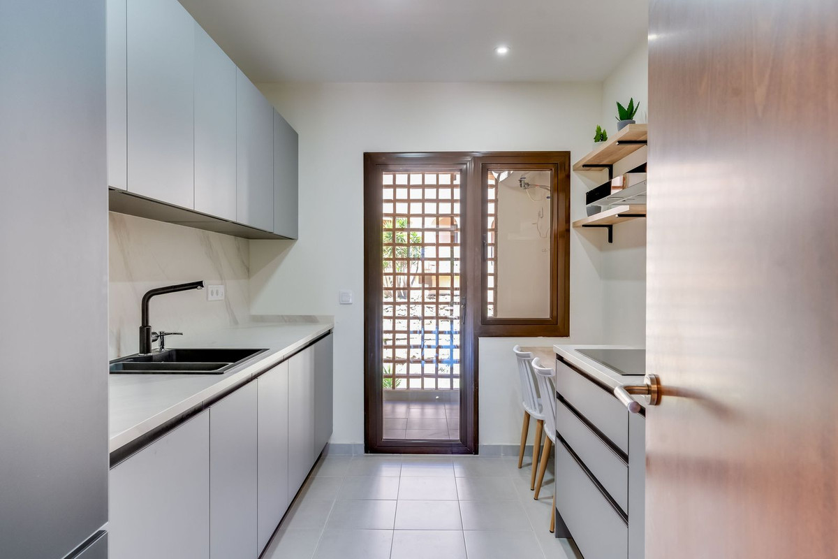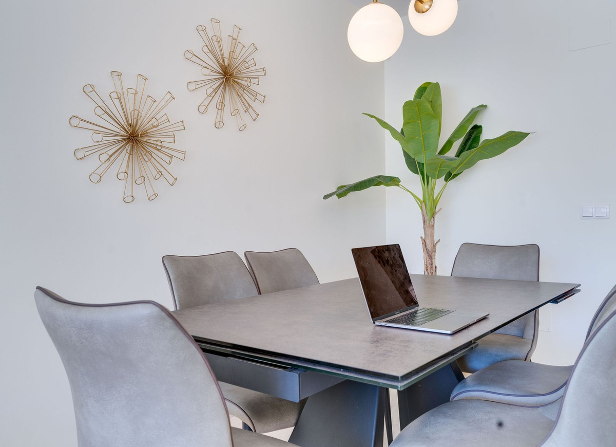 Ma nowoczesny śródziemnomorski design, jasne pokoje z dużymi oknami i duży taras. Posiada w pełni wyposażoną i wyposażoną kuchnię, dwie w pełni wyposażone łazienki i szafy, marmurowe podłogi, zainstalowaną ciepłą i zimną klimatyzację, jedno podziemne miejsce parkingowe i duży magazyn.