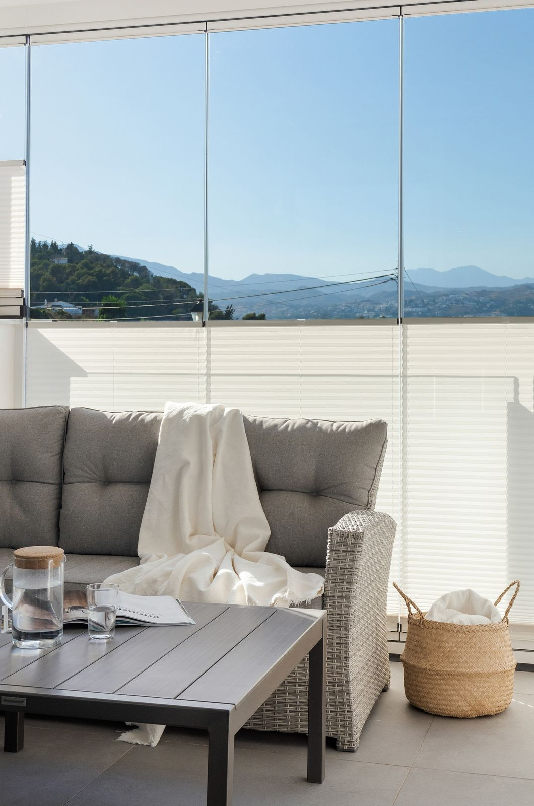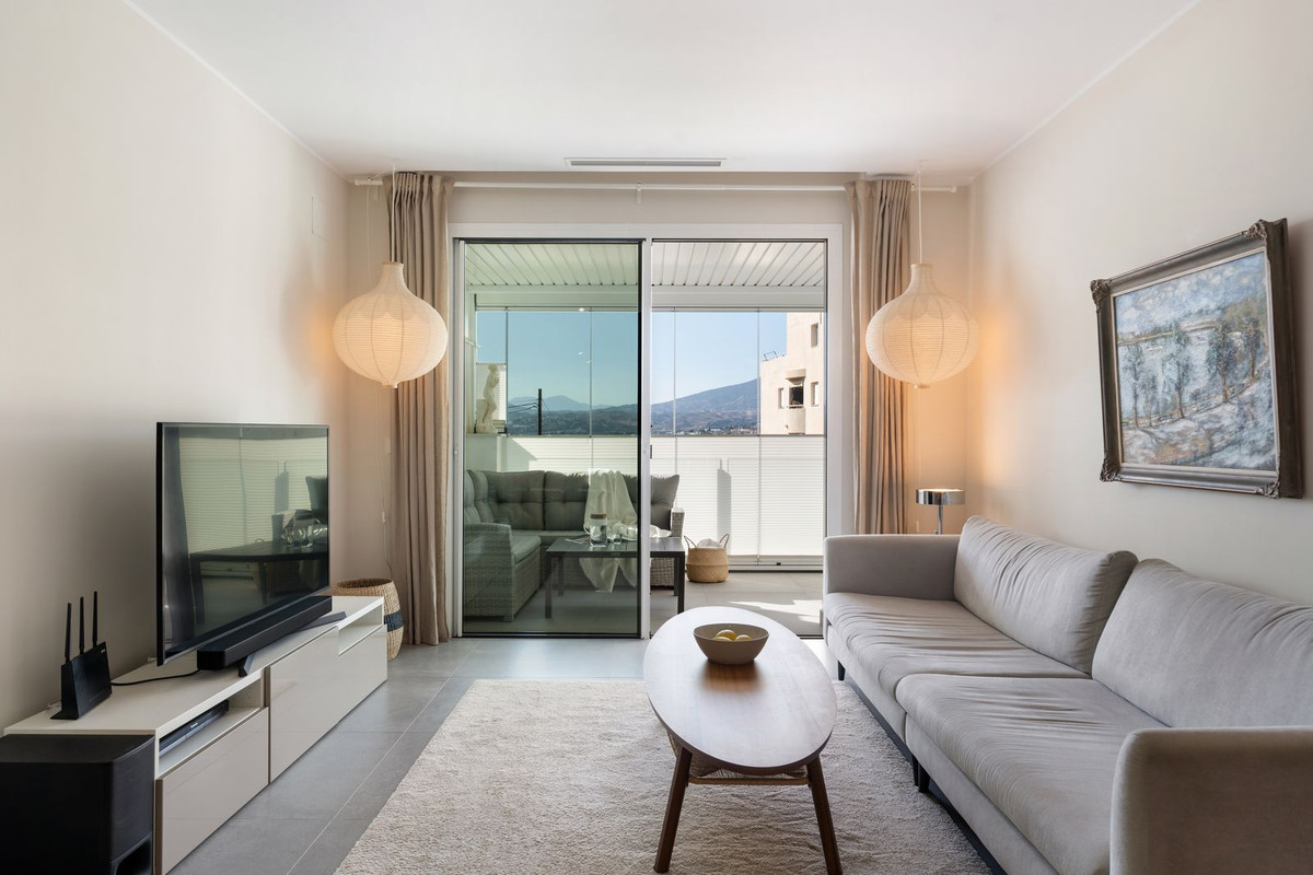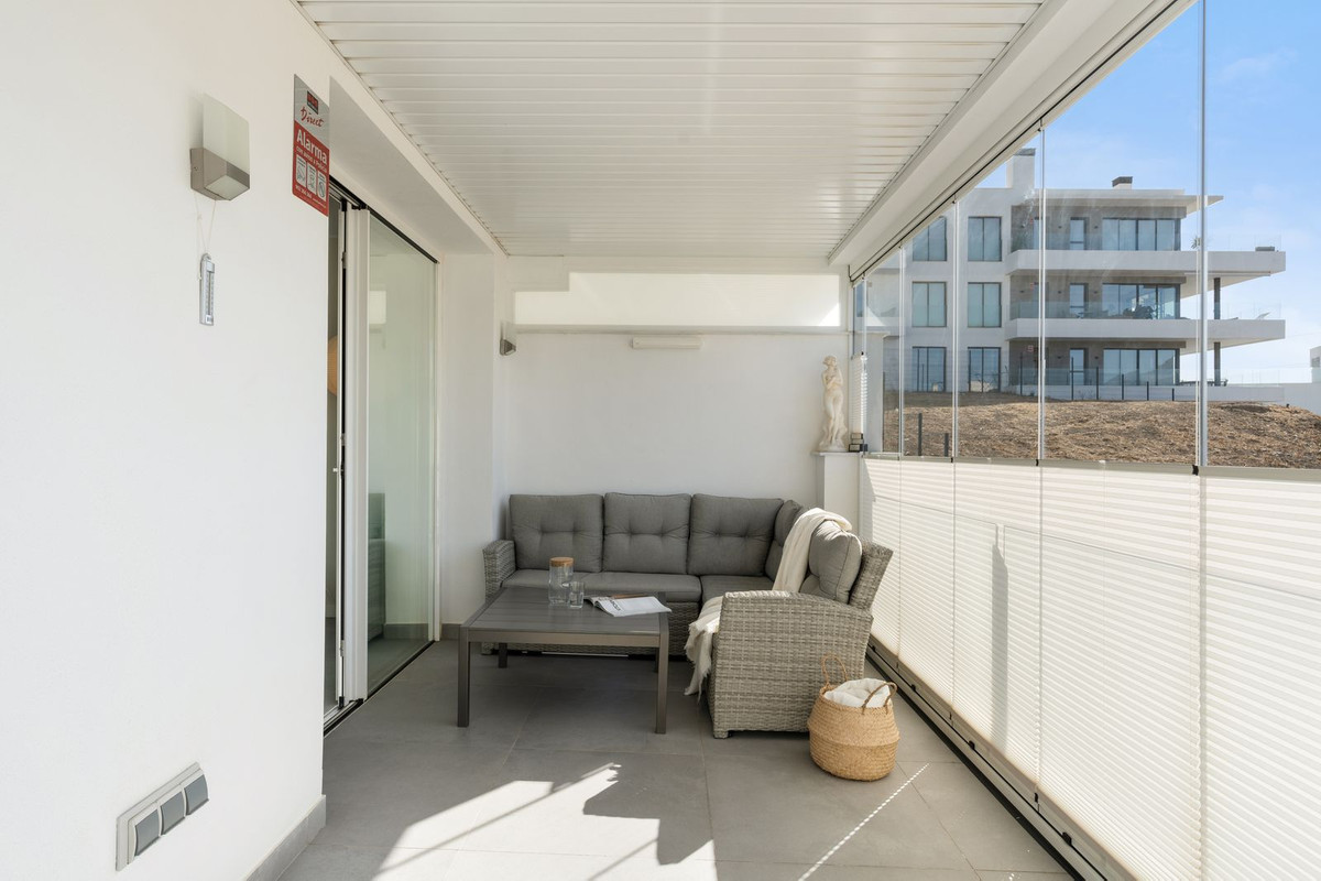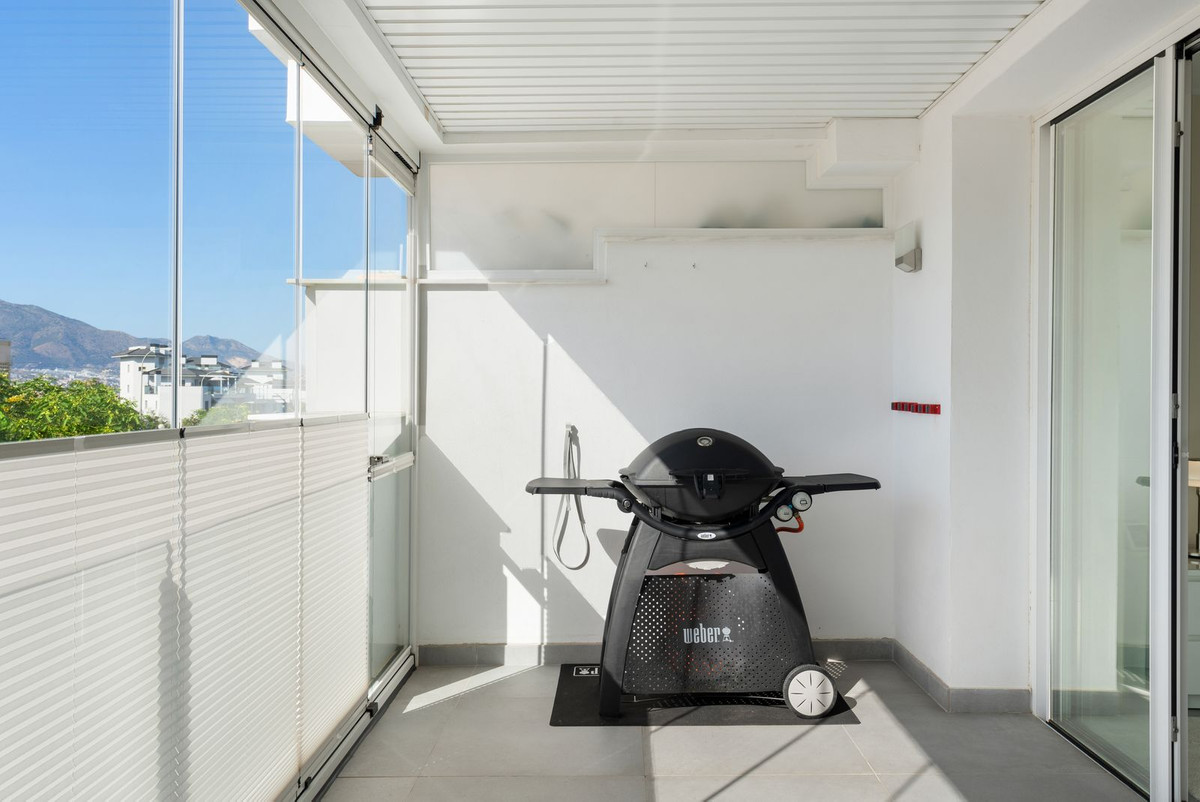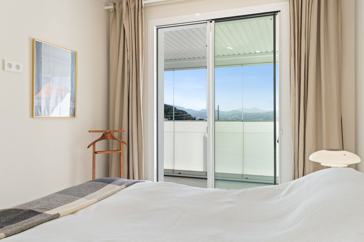 Dostęp do tarasu mamy z salonu / kuchni i głównej sypialni, z której roztacza się piękny widok na góry Mijas. Zadaszony i przeszklony taras w północno-zachodniej pozycji pozostaje chłodny i wygodny nawet w najgorętszych miesiącach letnich, szkło można otworzyć i cieszyć się świeżym powietrzem lub wieczornym światłem z tarasu.