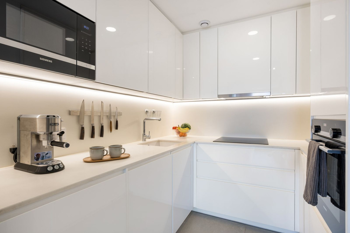 Jest to dobrze zaplanowany i nowoczesny apartament z 2 sypialniami i 2 łazienkami o stylowych wnętrzach i naturalnej kolorystyce. Mieszkanie na otwartym planie pomiędzy w pełni wyposażoną kuchnią z urządzeniami marki Siemens, jadalnią i salonem.