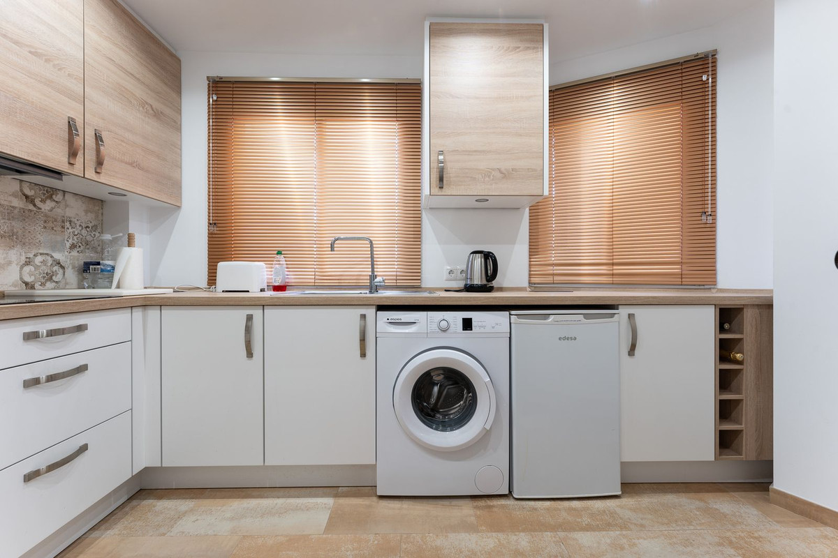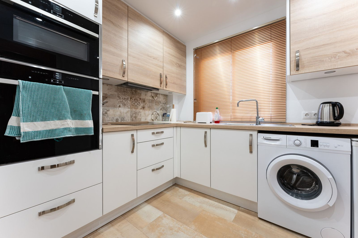 Apartament z 2 sypialniami (wymagającymi remontu), 1 odnowioną łazienką, nowoczesną kuchnią i nowymi oknami.