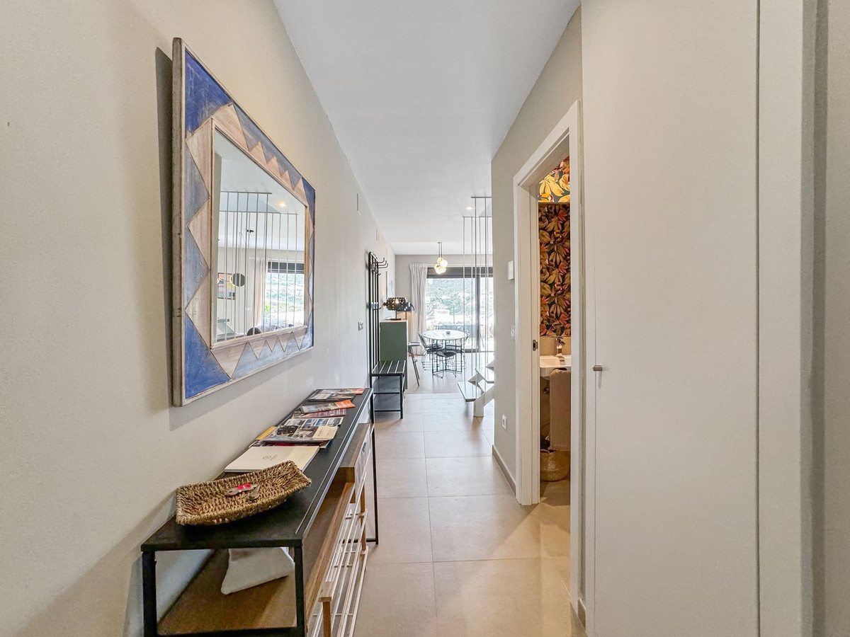 Poziom wejściowy składa się z jasnego holu z wbudowaną szafą, która prowadzi zarówno do toalety dla gości, jak i otwartej części dziennej, w której znajdują się sofy i telewizor z widokiem na morze oraz stół jadalny dla co najmniej sześciu osób. Kuchnia jest w pełni wyposażona w urządzenia Balay i jest oddzielona kryształową ścianą, ma własne pomieszczenie gospodarcze z oknem dla lepszej wentylacji.