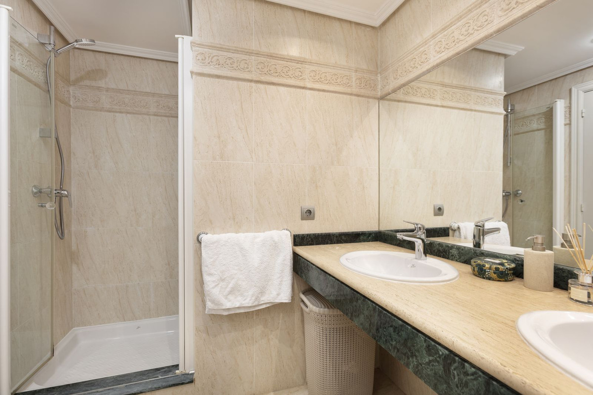 Niezwykle jasna nieruchomość z 2 sypialniami i 2 łazienkami z łazienką w głównej sypialni i marmurową podłogą w głównych pokojach. Przytulny salon jest idealnym miejscem na wieczorne oglądanie filmów, a sofa rozkłada się w podwójne łóżko (idealne dla gości lub jeśli chcesz wynająć nieruchomość). W apartamencie znajduje się duża kuchnia z nowymi urządzeniami Bosch i Samsung. Główna sypialnia i duży salon wychodzą na ogromny taras od strony południowej ze wspaniałymi widokami na ogrody i są idealnym miejscem do łapania słońca i zabawiania przyjaciół i rodziny, słuchając ptaków na drzewach. Istnieje również drugi taras, który otwiera się z kuchni i oferuje widoki na górę La Concha. Przy kuchni znajduje się również pralnia z pralką. Do nieruchomości przynależy jedno prywatne podziemne miejsce parkingowe i pomieszczenie gospodarcze. Na terenie obiektu znajduje się duży basen z mnóstwem leżaków, a także niewielka siłownia i sauny.
