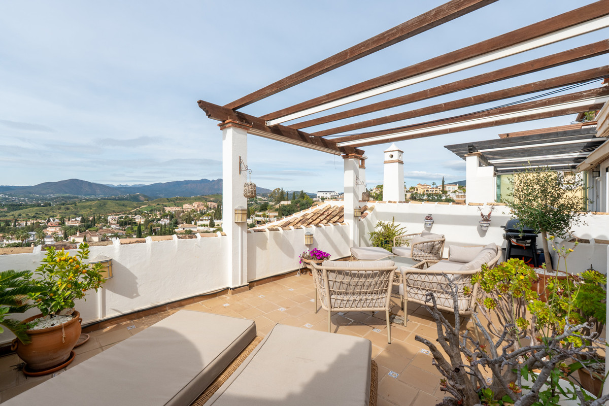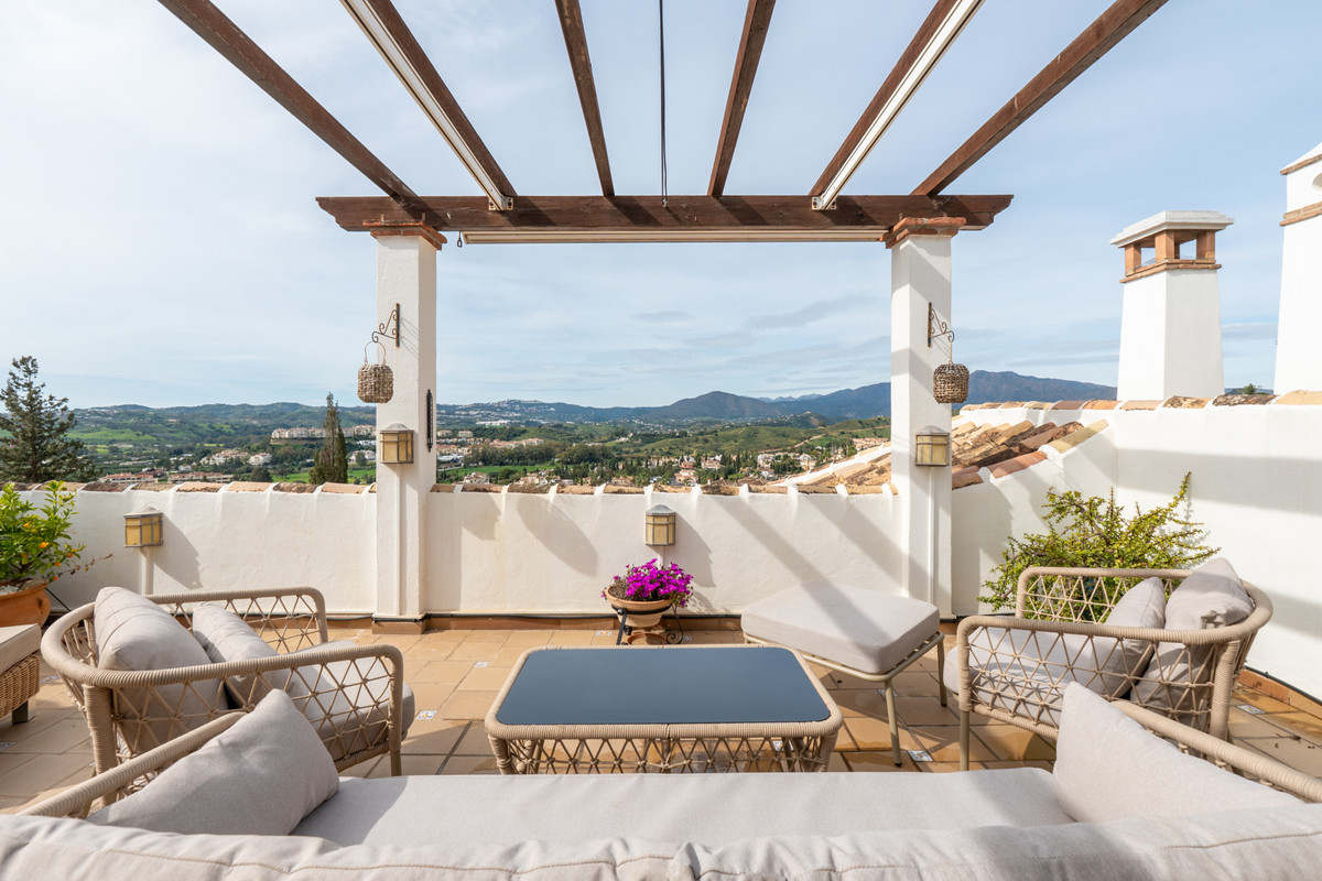 Odkryj ten wyjątkowy dwupoziomowy apartament w malowniczej społeczności Puebla Aida, Mijas Golf. Dzięki zapierającym dech w piersiach panoramicznym widokom na pole golfowe, góry i wybrzeże, ta nieruchomość oferuje idealne połączenie andaluzyjskiego uroku i zrelaksowanego śródziemnomorskiego życia.