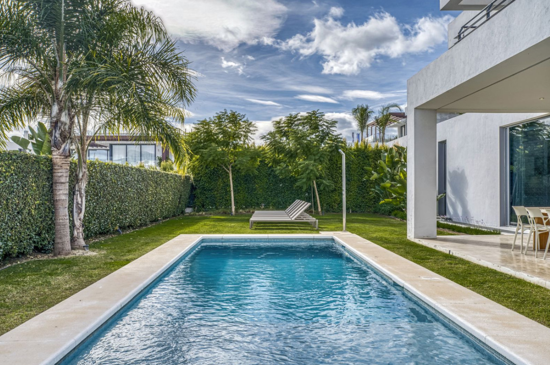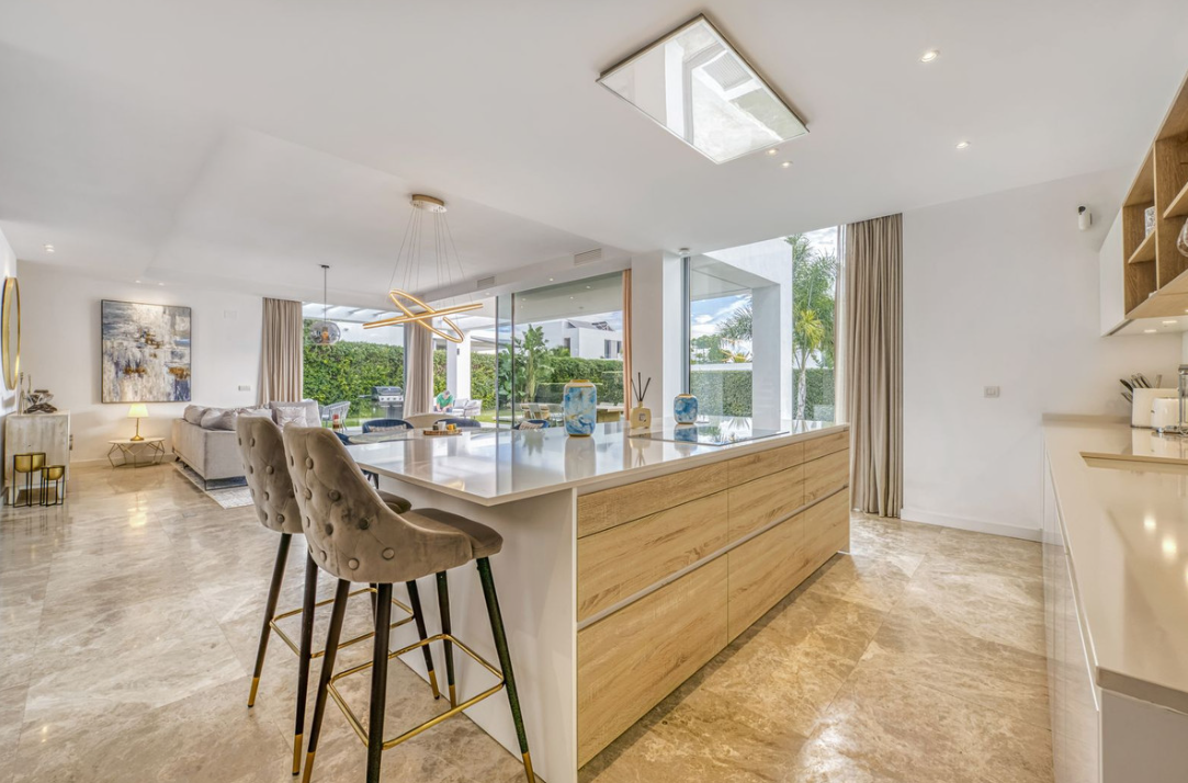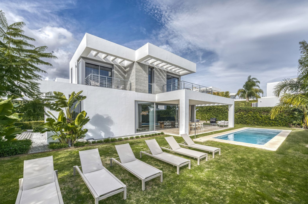 Love at first sight! Impeccable luxury detached villa in a top location. Situated between Marbella and Estepona, with the beaches of Costalita only 5mn away. The best hotel on the coast, Villa Padierna with its restaurants and 2000m2 spa, as well as some of the most renowned golf courses, are within a 5km radius. As you enter, your senses awaken to the mature and landscaped garden and entrance, brightness per the southwest orientation, and massive rooms with a practical layout. Of recent construction, the condition is perfect and no details have been left untouched. The main floor consists of an extensive living room with a large american kitchen, and an implanted living room. Direct access to a big outside space, with terrace, barbecue, chill-out areas, and the swimming pool all day in the sun. On this level, you will find a bedroom, full bathrooms, and an office space. Upstairs, more sleeping area: two double bedrooms, bathrooms, and plenty of walk-in closets. From the terrace, enjoy sea views and wonderful sunsets. Downstairs, the owners have organised a games room, gym, two further bedrooms and wash room. The garage has space for two cars. The residential area is lovely, newly built, and with easy access. A must see!