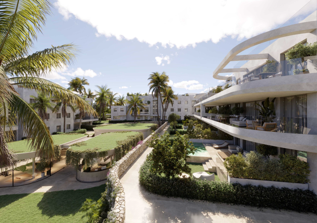 Each apartment harmonizes with its environment. Sculptural yet understated, curved terraces mimic the coastline’s natural rhythm, while communal areas are deeply rooted in nature, featuring green roofs, layered planting, and the gentle shade of palm trees.