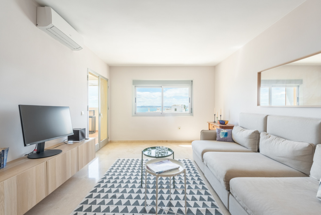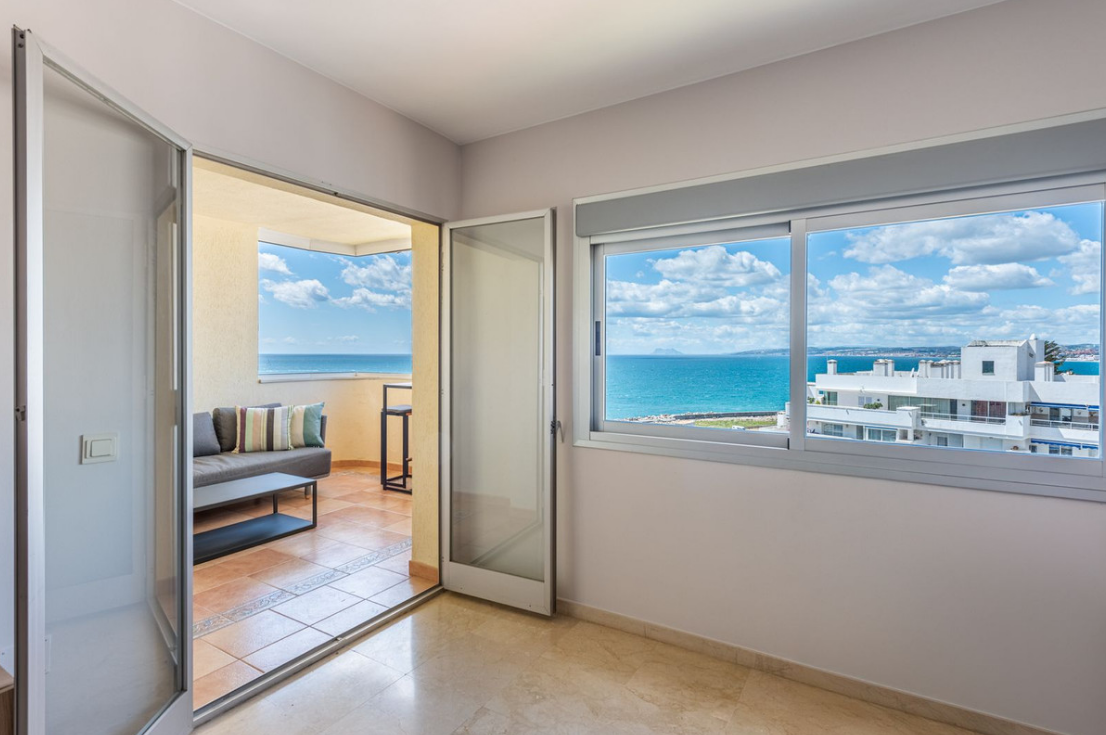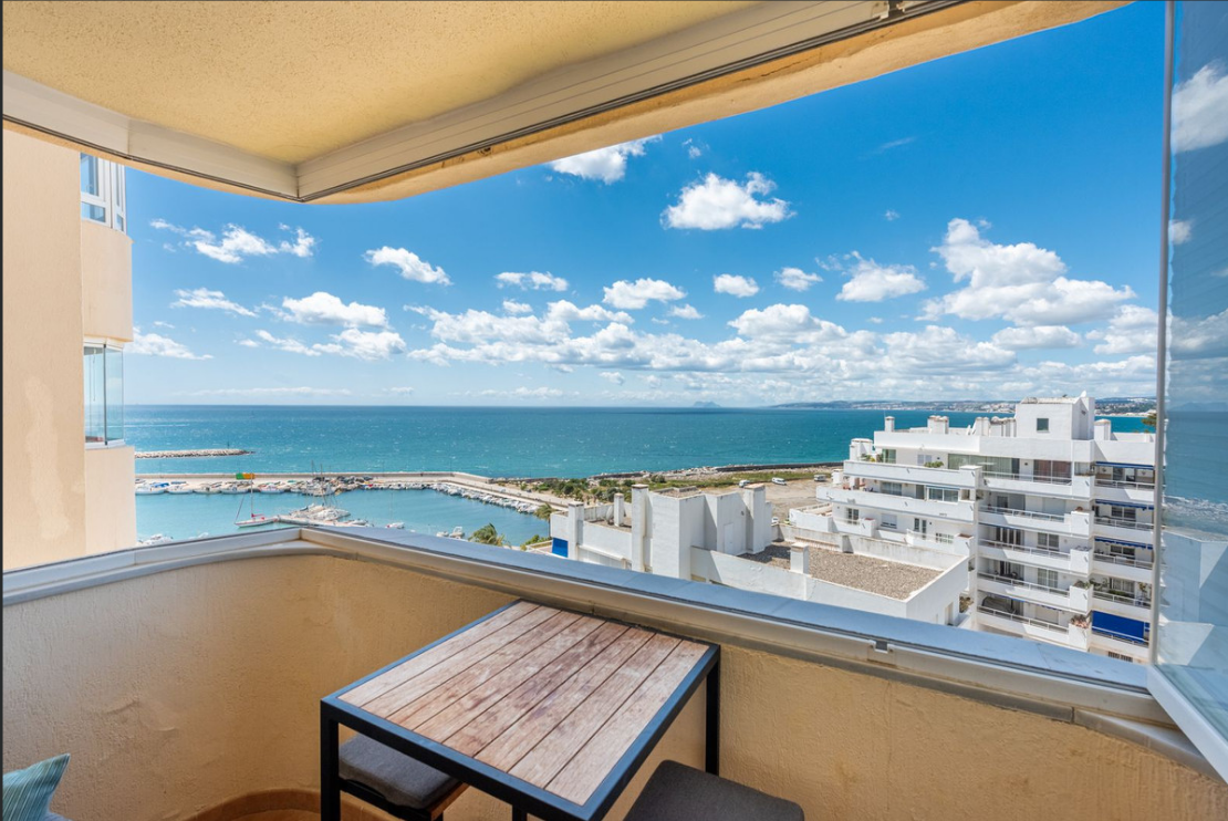 Niesamowity apartament z dużym zadaszonym tarasem i panoramicznym widokiem na port w Esteponie, morze i Gibraltar!