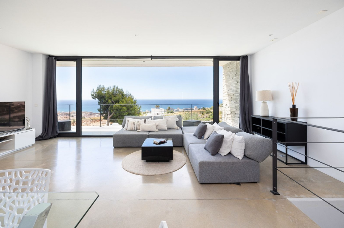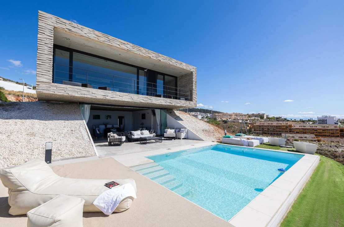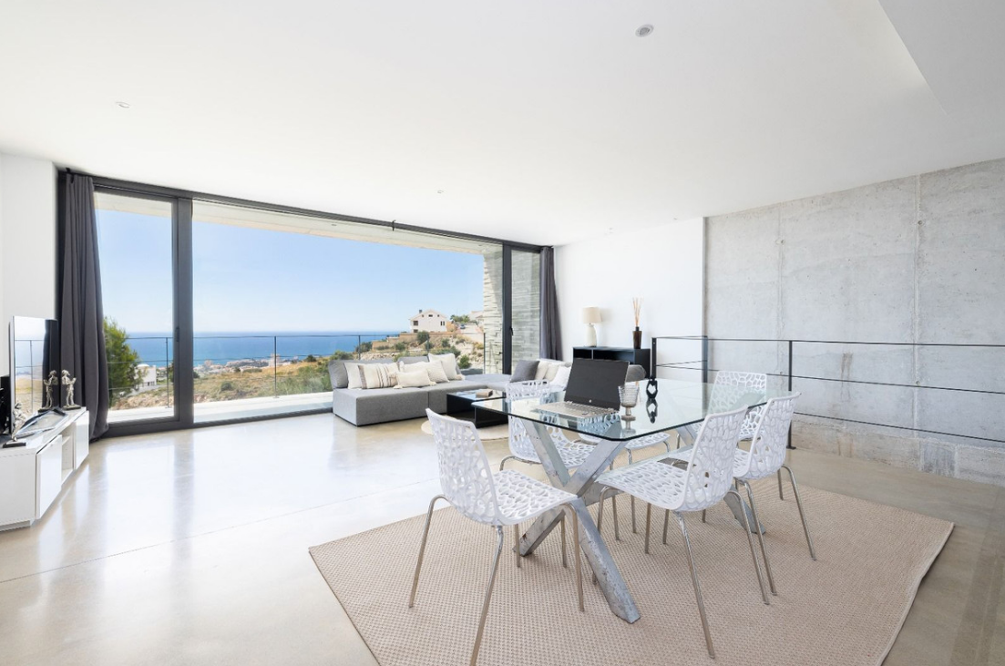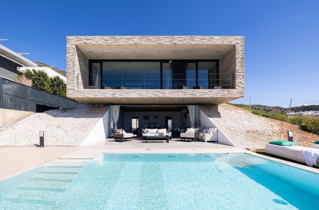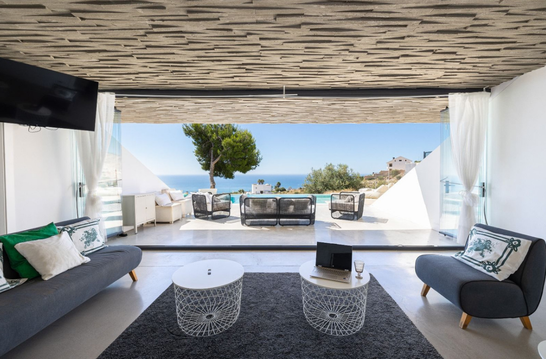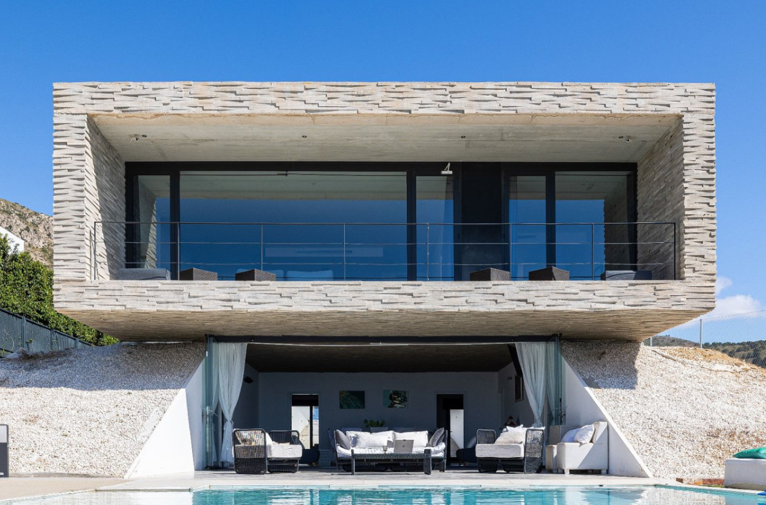 Architektura willi to kwintesencja czystych linii i prostokątnych struktur geometrycznych, zbudowanych z solidnych i eleganckich materiałów. Designerska kuchnia w jadalni otoczona jest kryształowymi ścianami, zapewniając przestrzeń wypełnioną naturalnym światłem i spektakularnymi widokami z morza i basenu. Orientacja willi została starannie zaprojektowana, aby uchwycić piękno okolicy, oferując panoramę od morza po okoliczne góry.