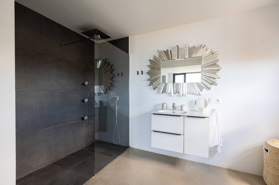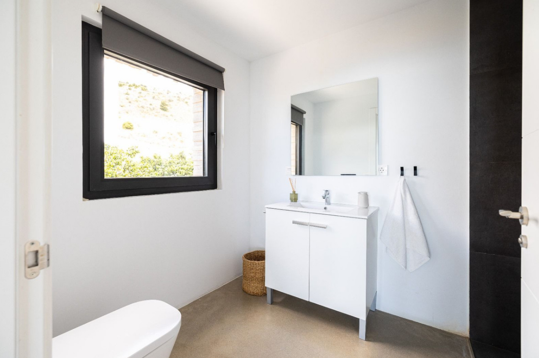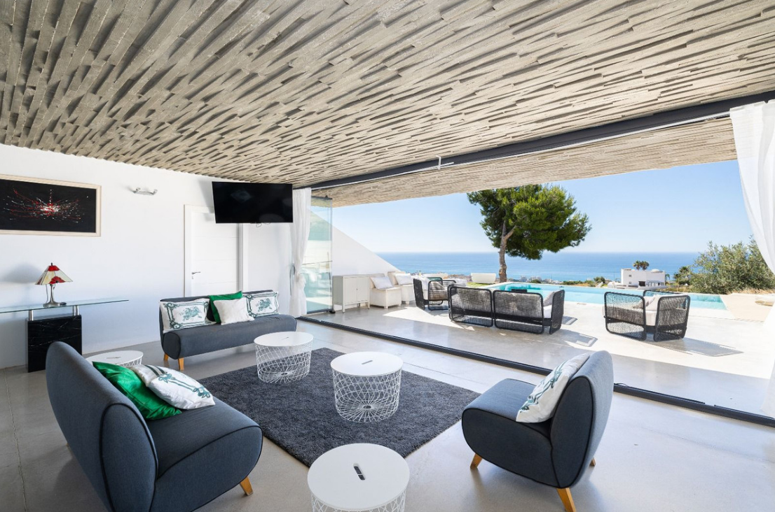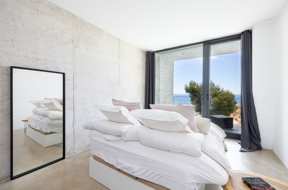 Rozmieszczona na roślinach willa posiada cztery obszerne sypialnie i trzy designerskie łazienki. Główna sypialnia posiada łazienkę i imponującą kryształową ścianę frontową, dzięki czemu goście i goście mogą cieszyć się niezapomnianymi chwilami. Na niższym piętrze znajduje się duża jadalnia z bezpośrednim dostępem do basenu hermosa i ogrodu z panoramicznym widokiem na morze.