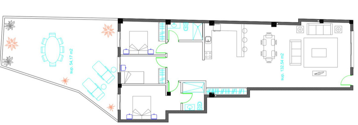 Apartament 3 sypialnie 2 łazienki 365,000 €